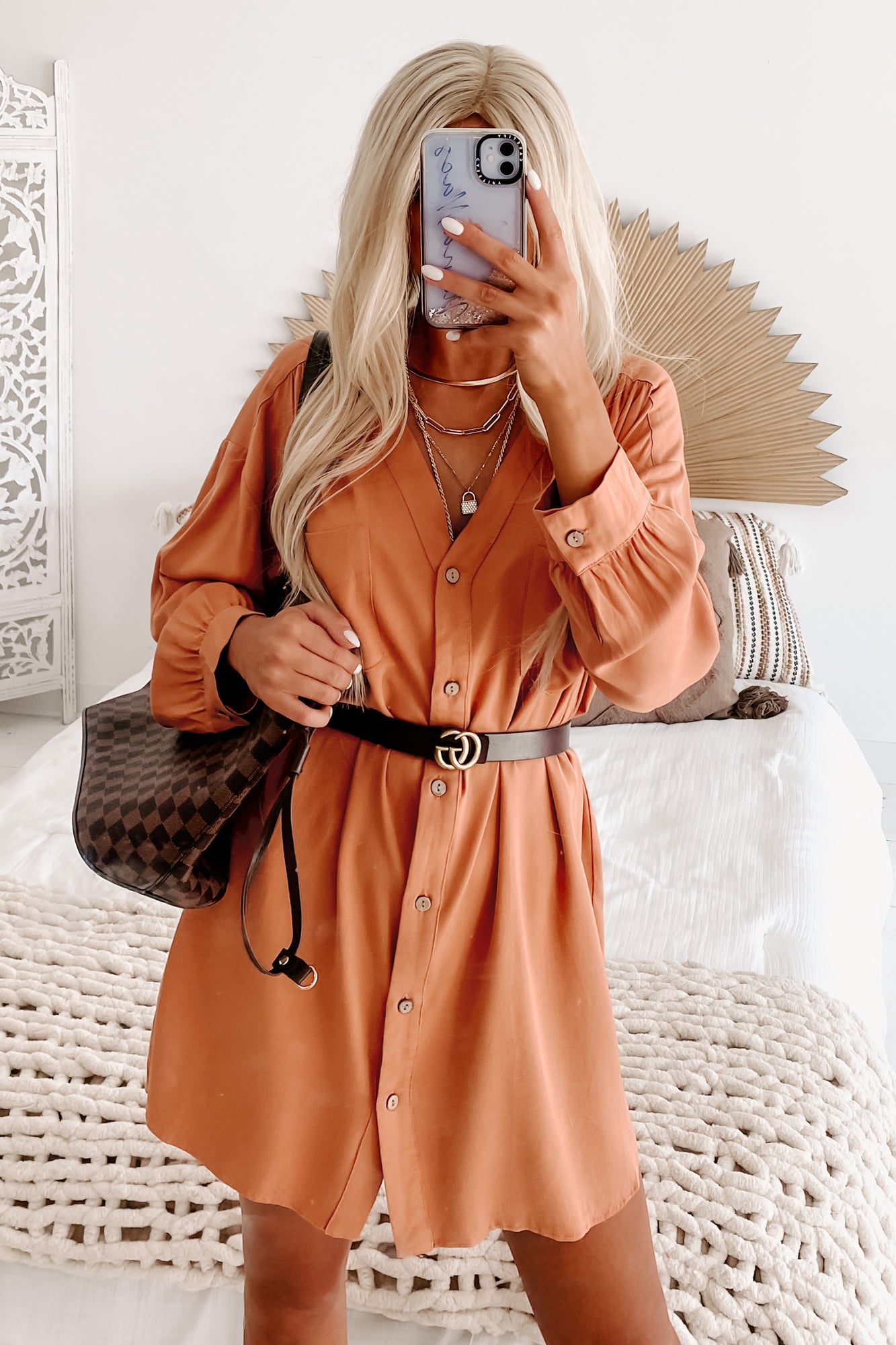 Lake Lover Long Sleeve Button Down Tunic Dress (Desert Mist)