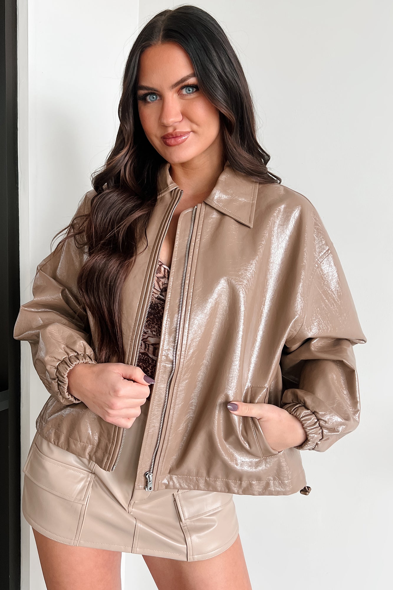 Always Opinionated Patent Leather Jacket (Brown)