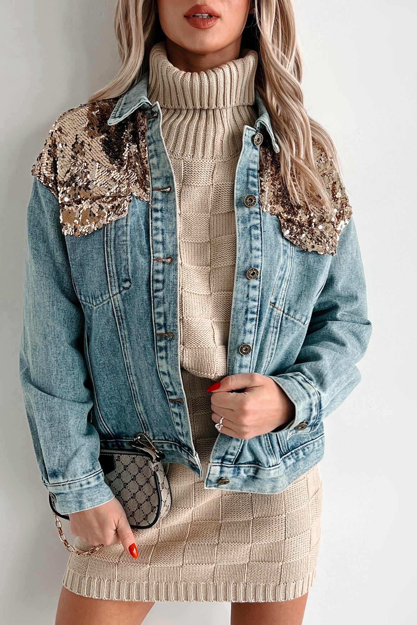 Keeping Things Fun Sequin Denim Jacket (Gold Combo)