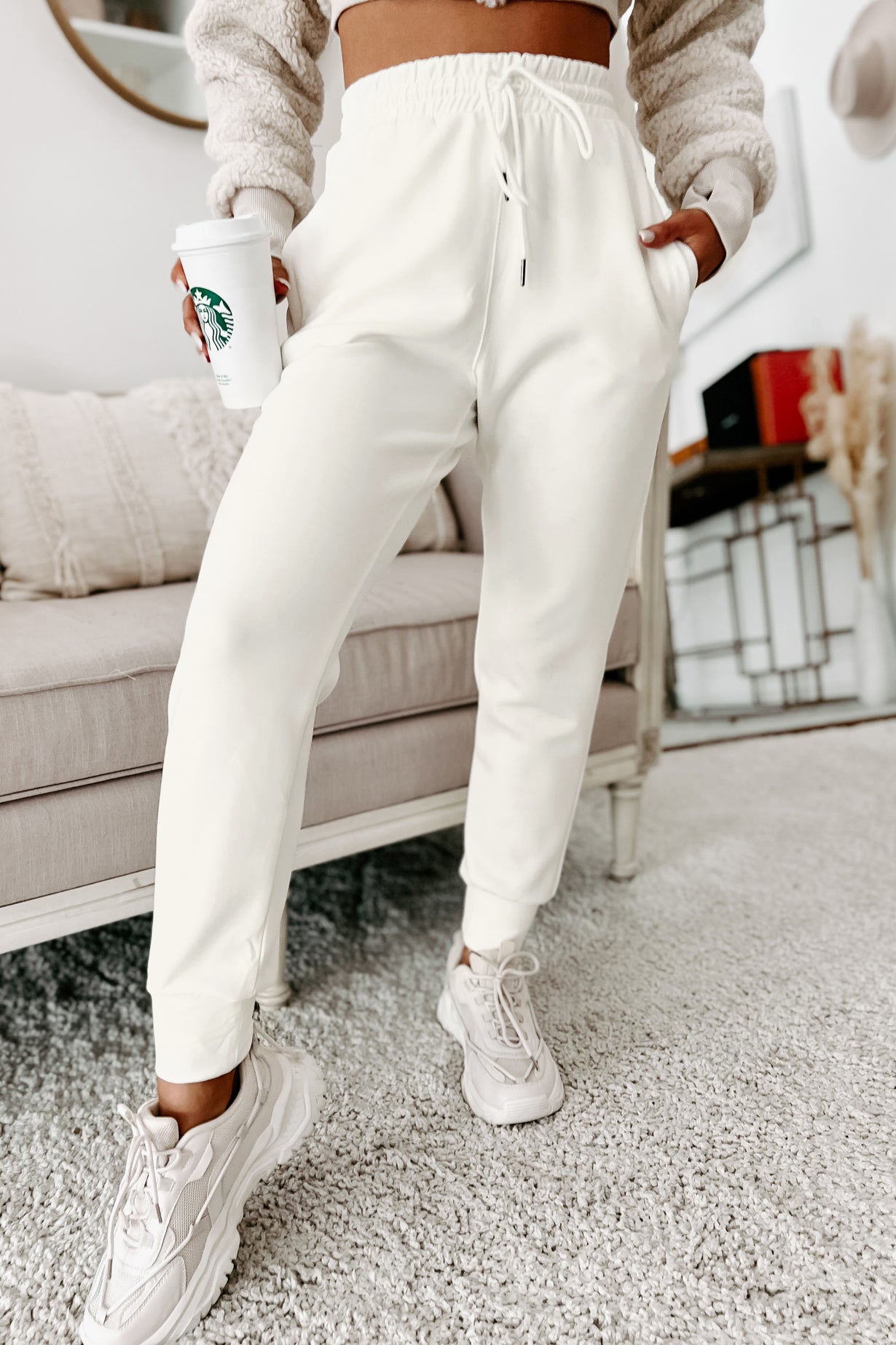 Bestie For The Restie Butter Soft Side Pocket Joggers (White Pearl)
