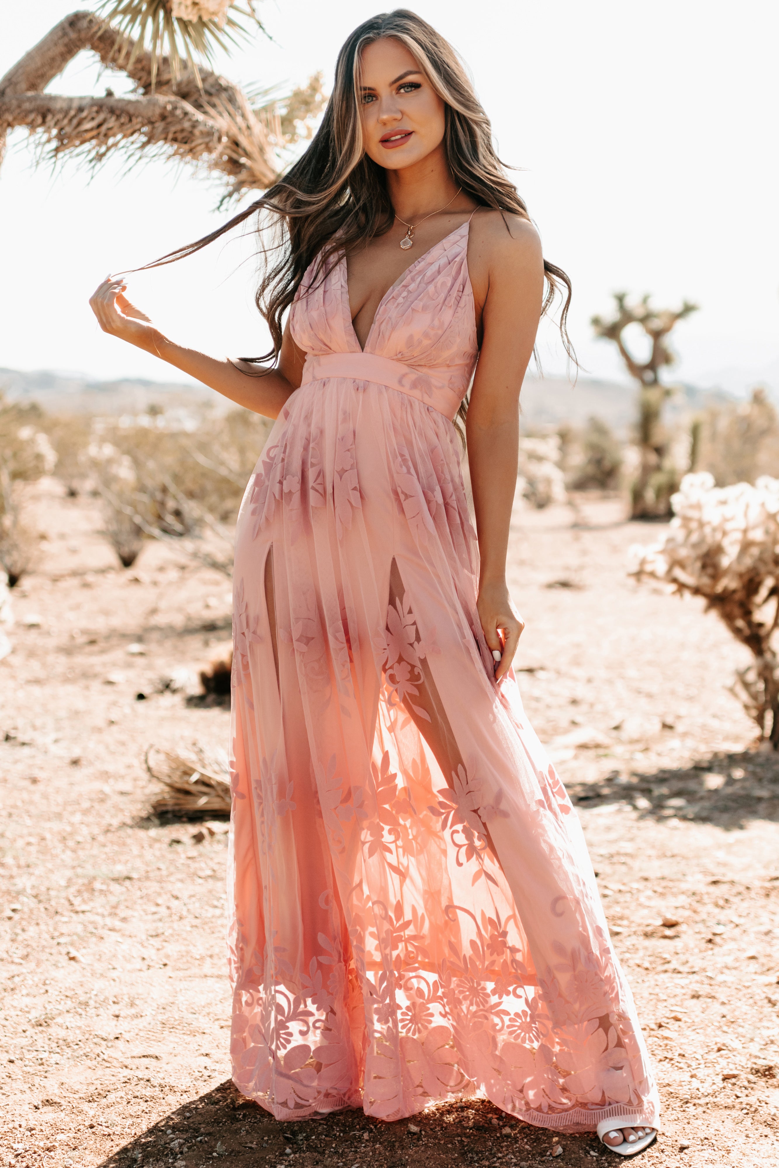 Lust Or Love Floral Mesh Maxi Dress (Mauve)