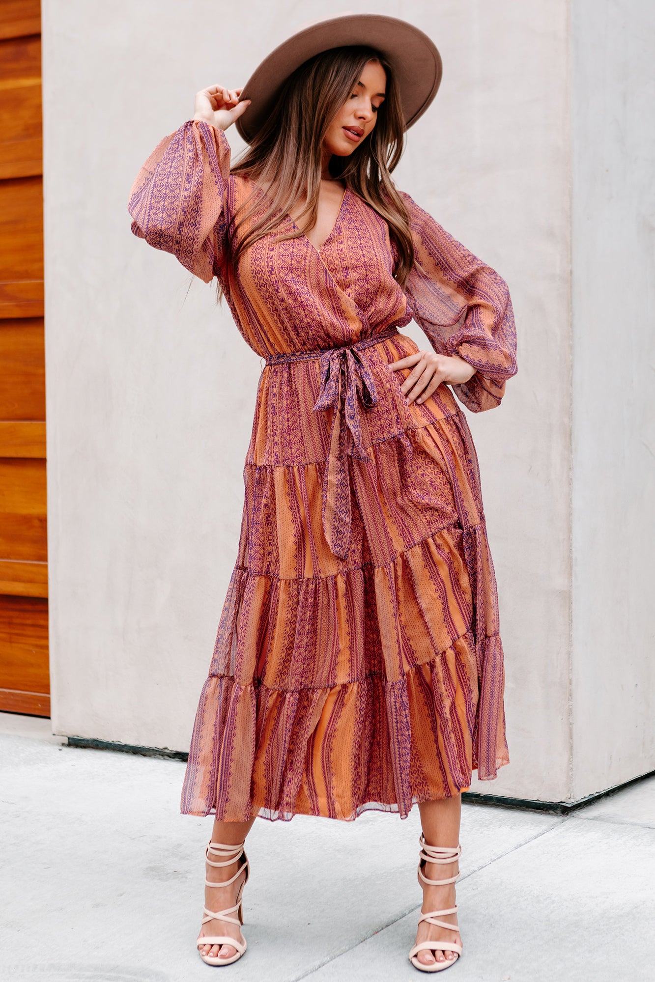 Making Me Blush Floral Long Sleeve Dress (Tan Mix)