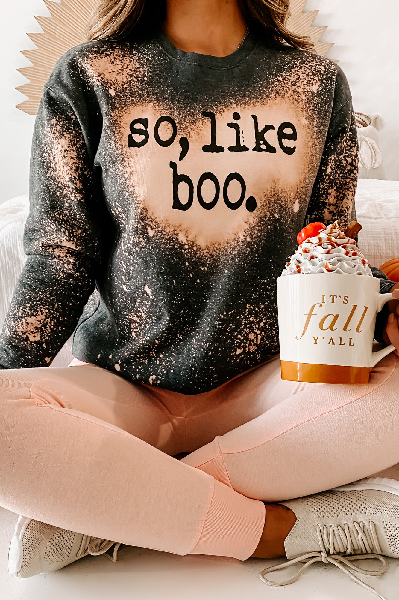 "So, Like Boo." Bleached Graphic Sweatshirt (Heather Charcoal)