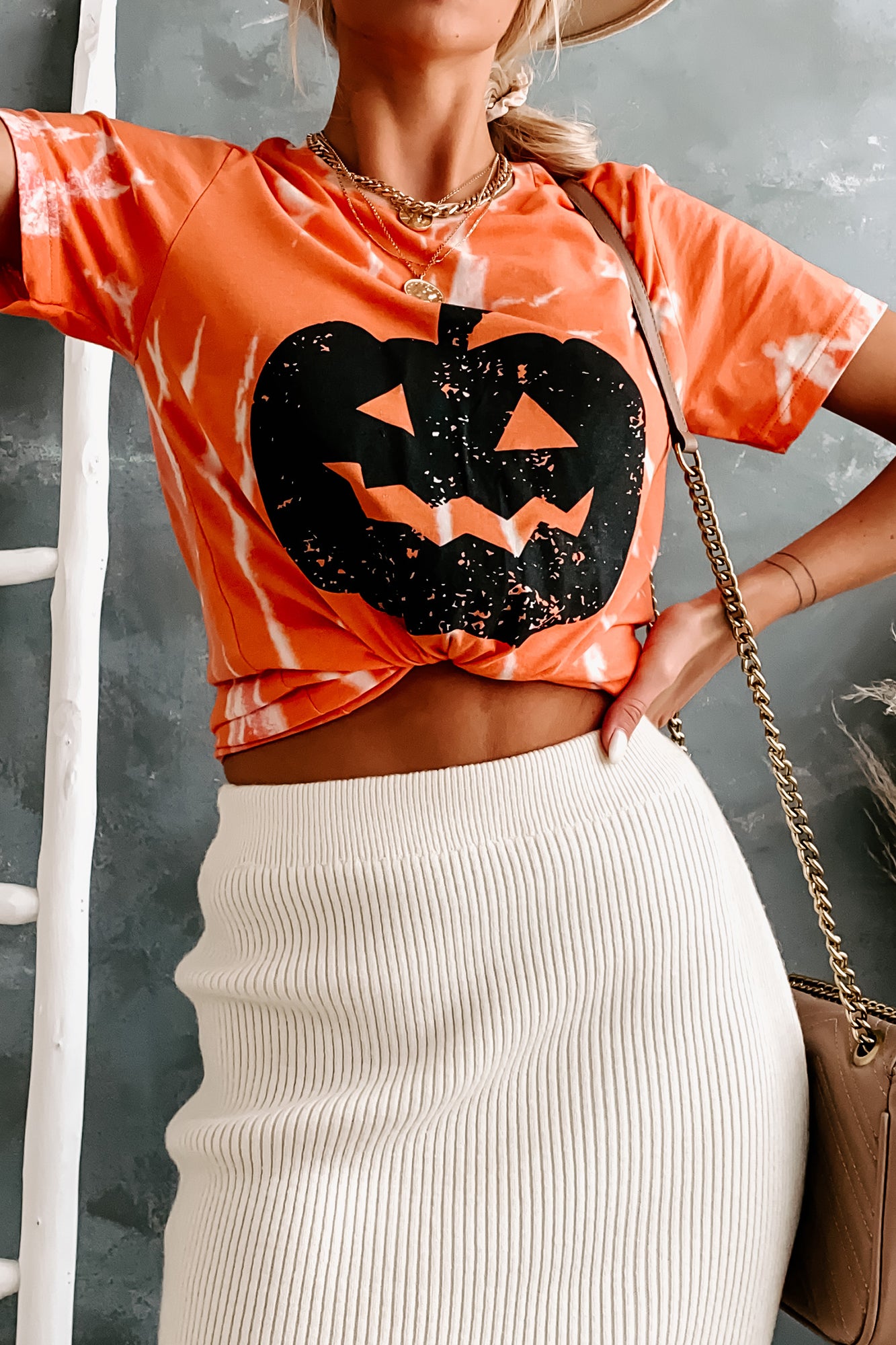 "Pumpkin Please" Tie-Dye Pumpkin Graphic T-Shirt (Orange)