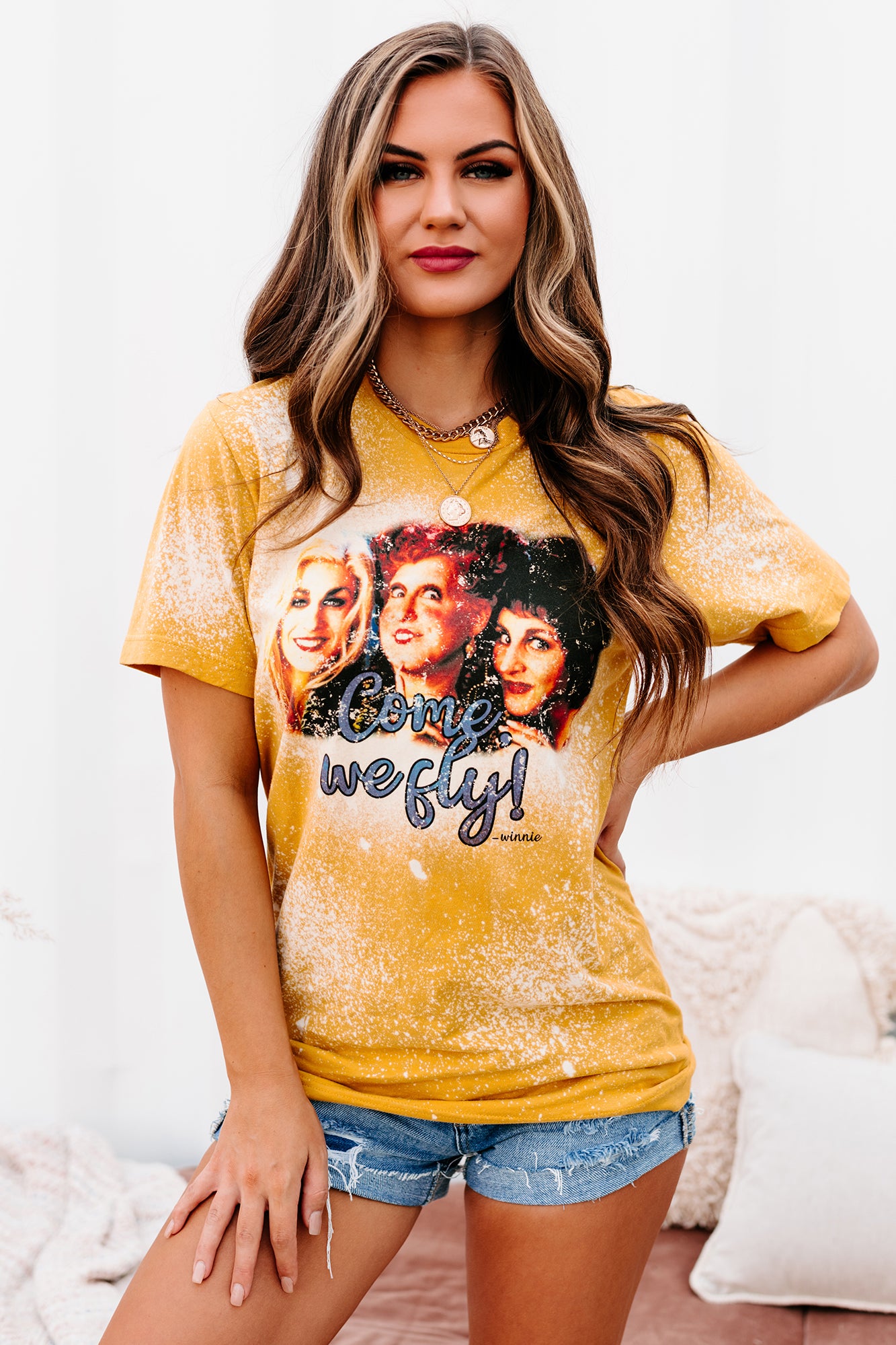 "Come, We Fly" Bleached Graphic T-Shirt (Mustard)