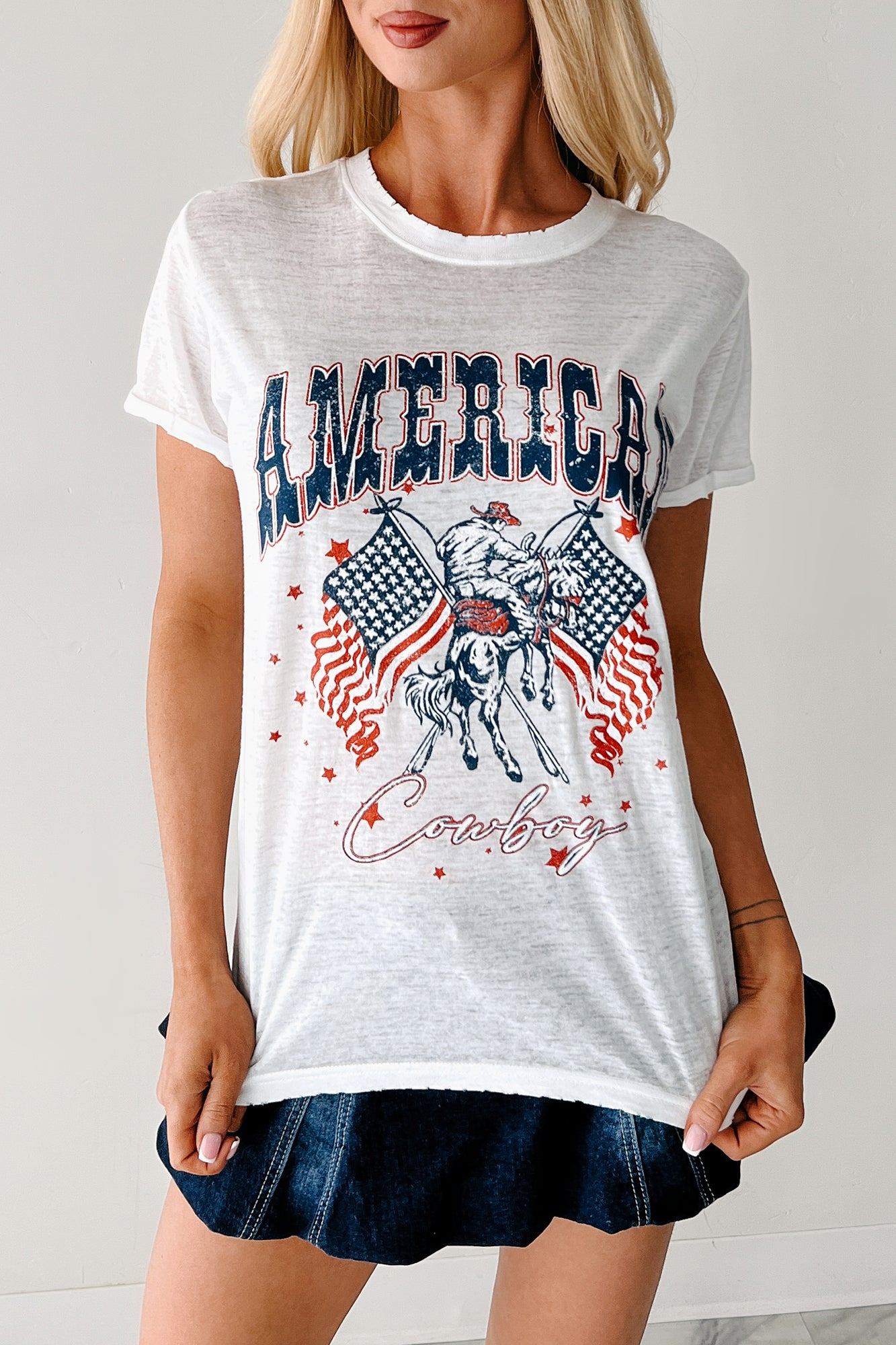 - Front: "American Cowboy" Cowboy & American Flag Graphic