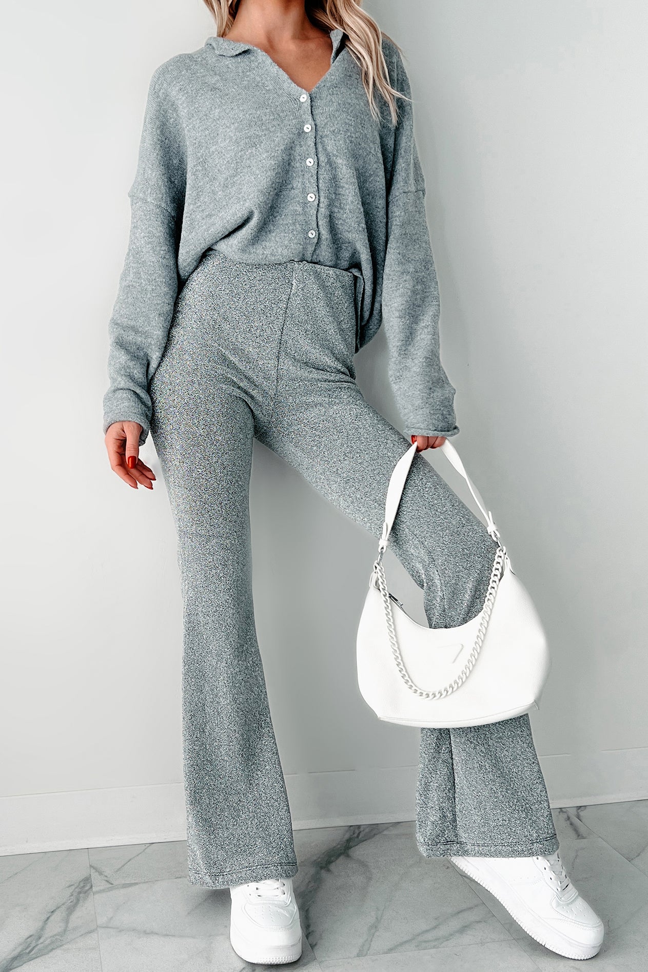 Anastasia Metallic Flare Pants (Silver)