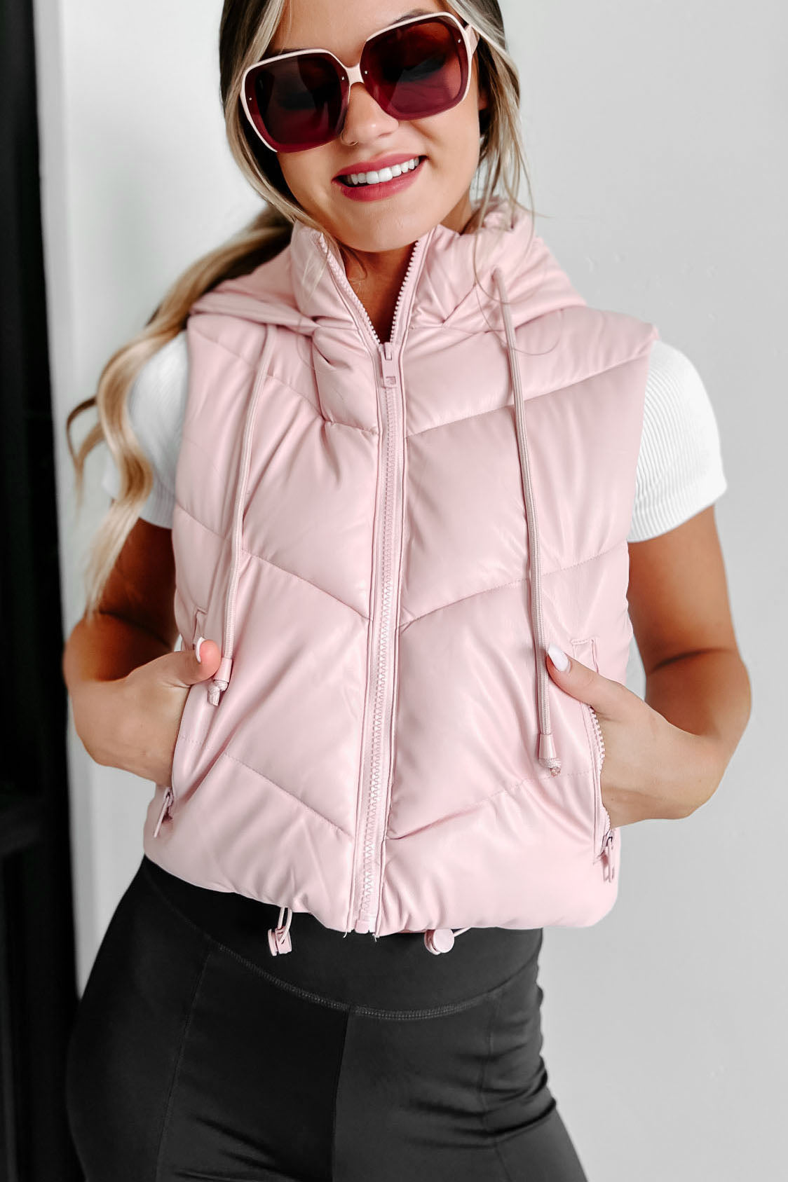 Look Chic. Even During The Colder Months With This Pink. Faux Leather. Puffer Vest!