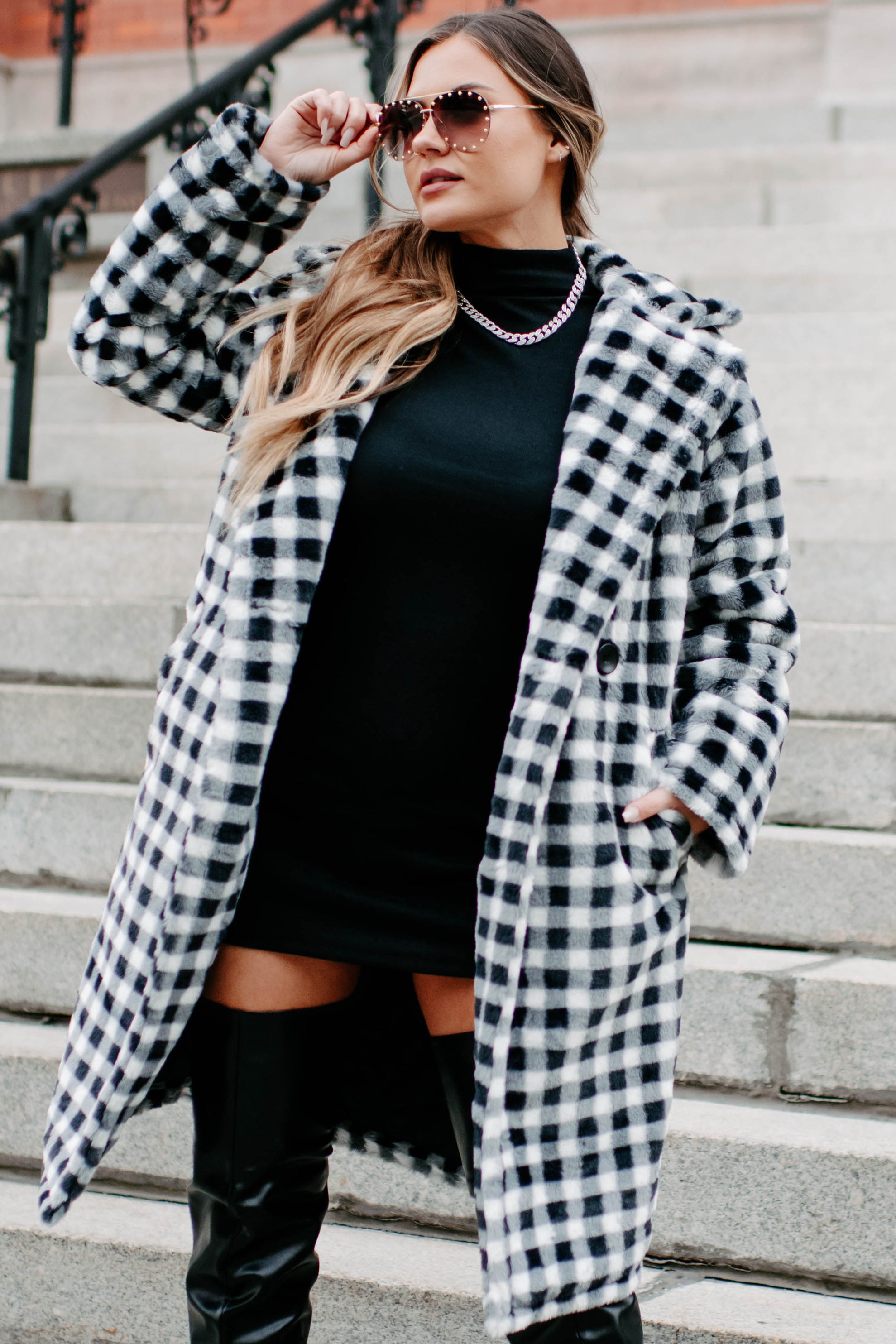 You'll Feel So Fabulous In This Checker Printed Faux Fur Coat!