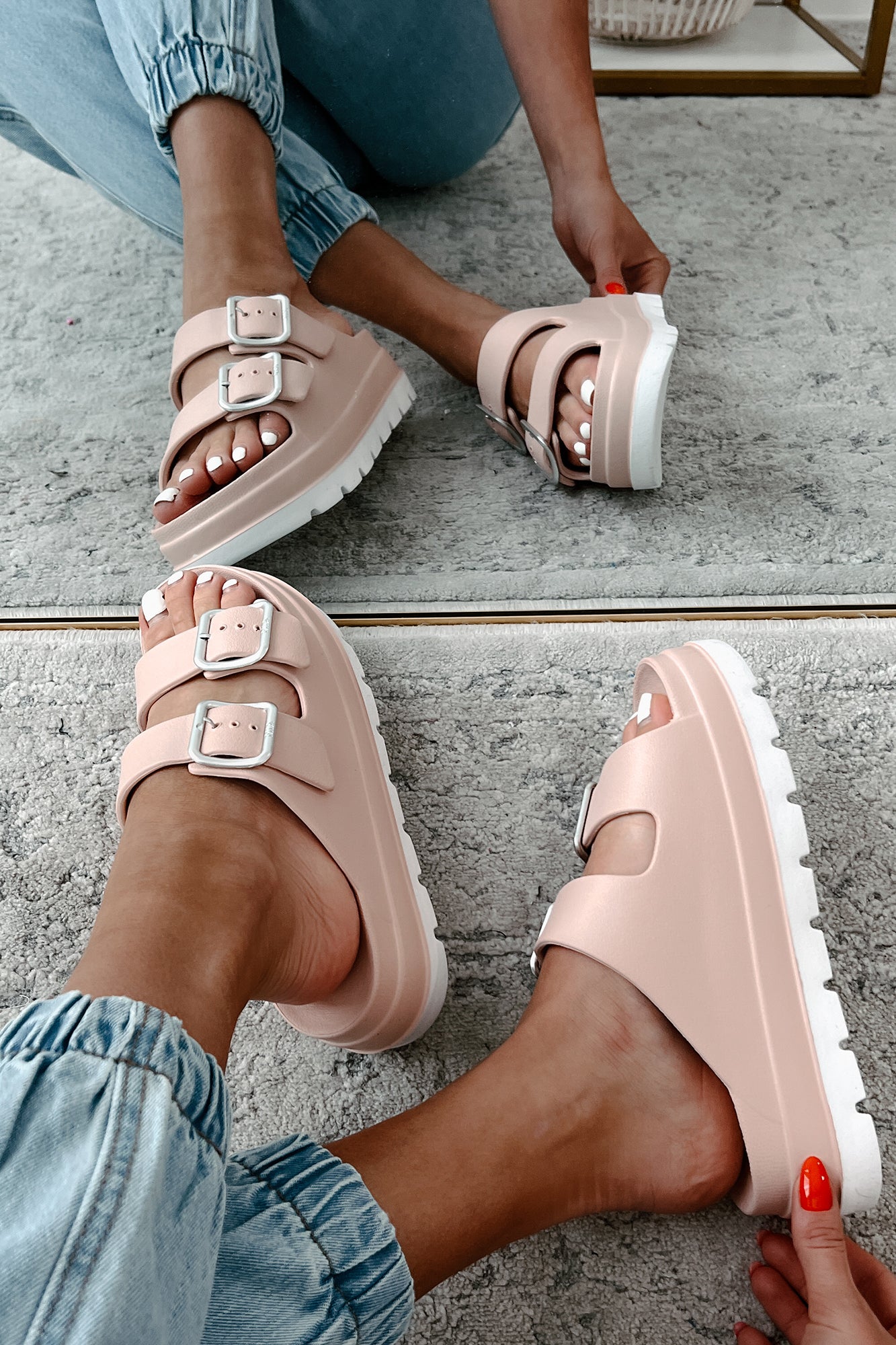 Casually Crushing Chunky Platform Sandals (Blush)