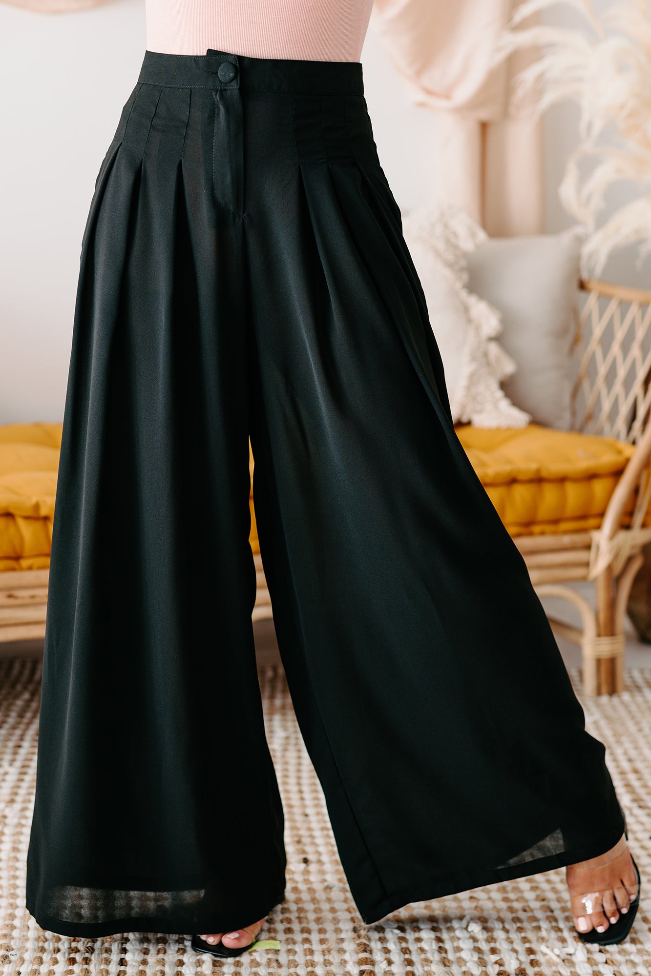 These Black. High Waisted. Pleated. Wide Leg Pants Are Perfect For Any Occasion!
