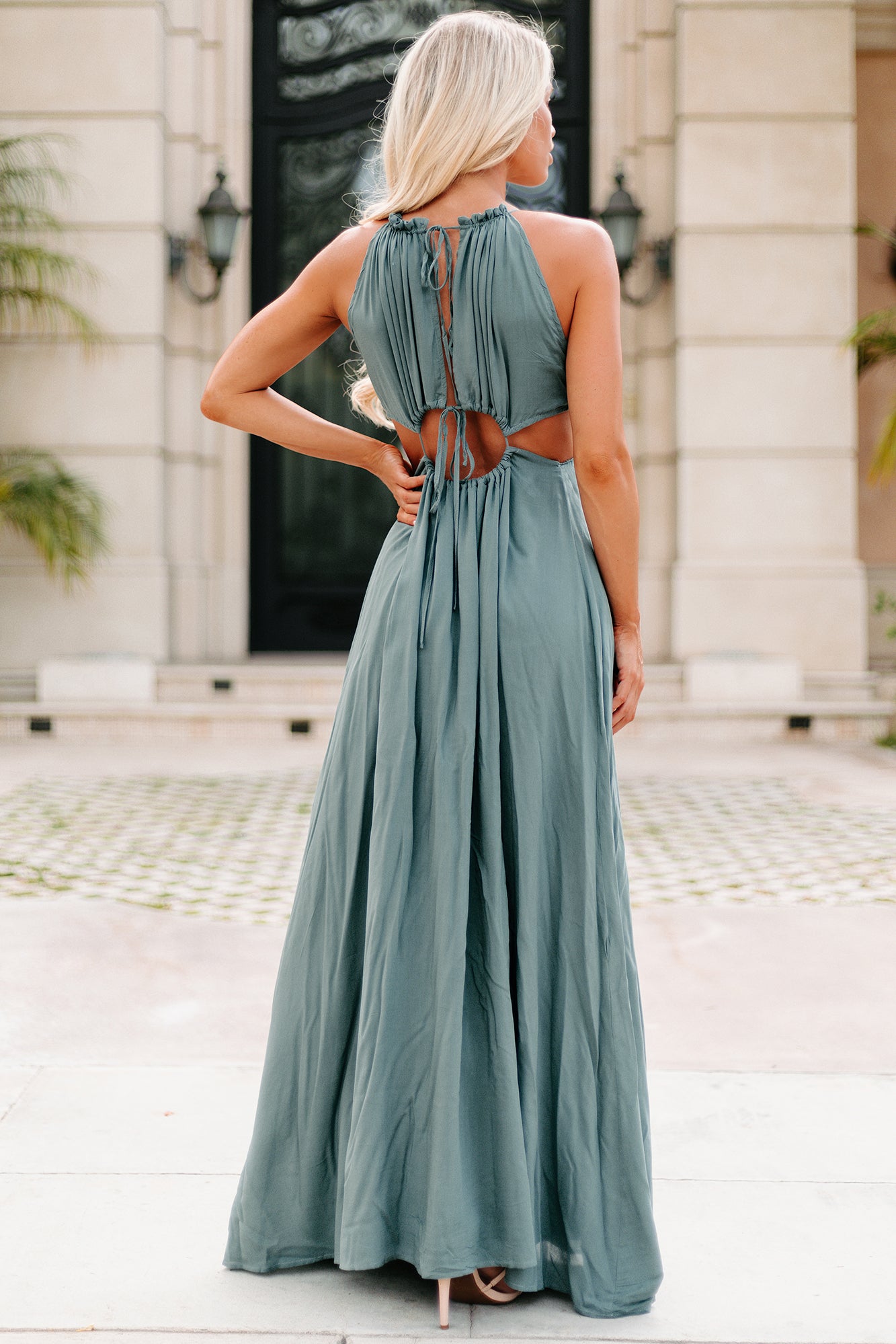 Show Off In This Dark Sage. High Neck. Cut-Out. Maxi Dress!
