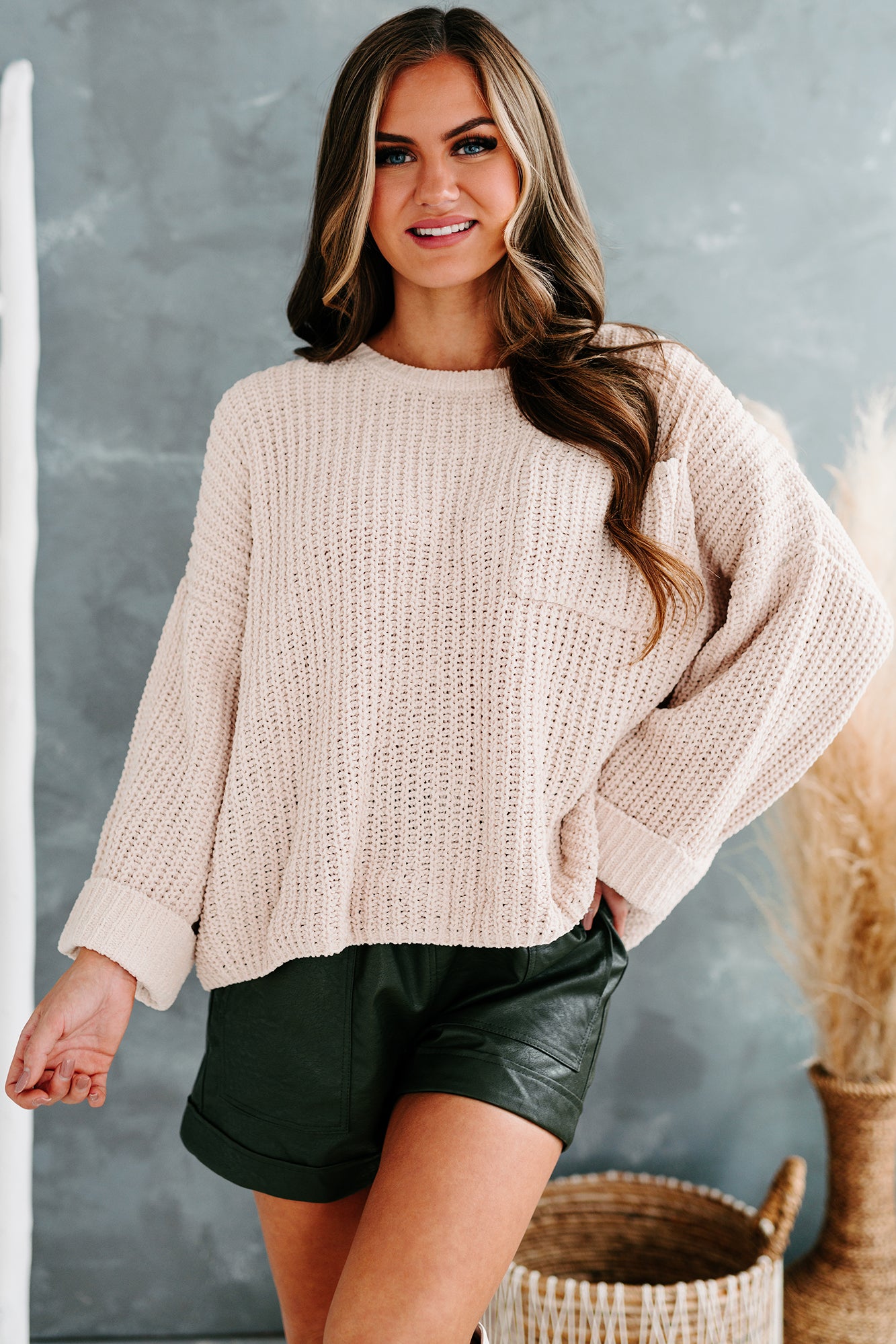 Stay Warm All Winter Long In This Sand. Chenille Knit Sweater!