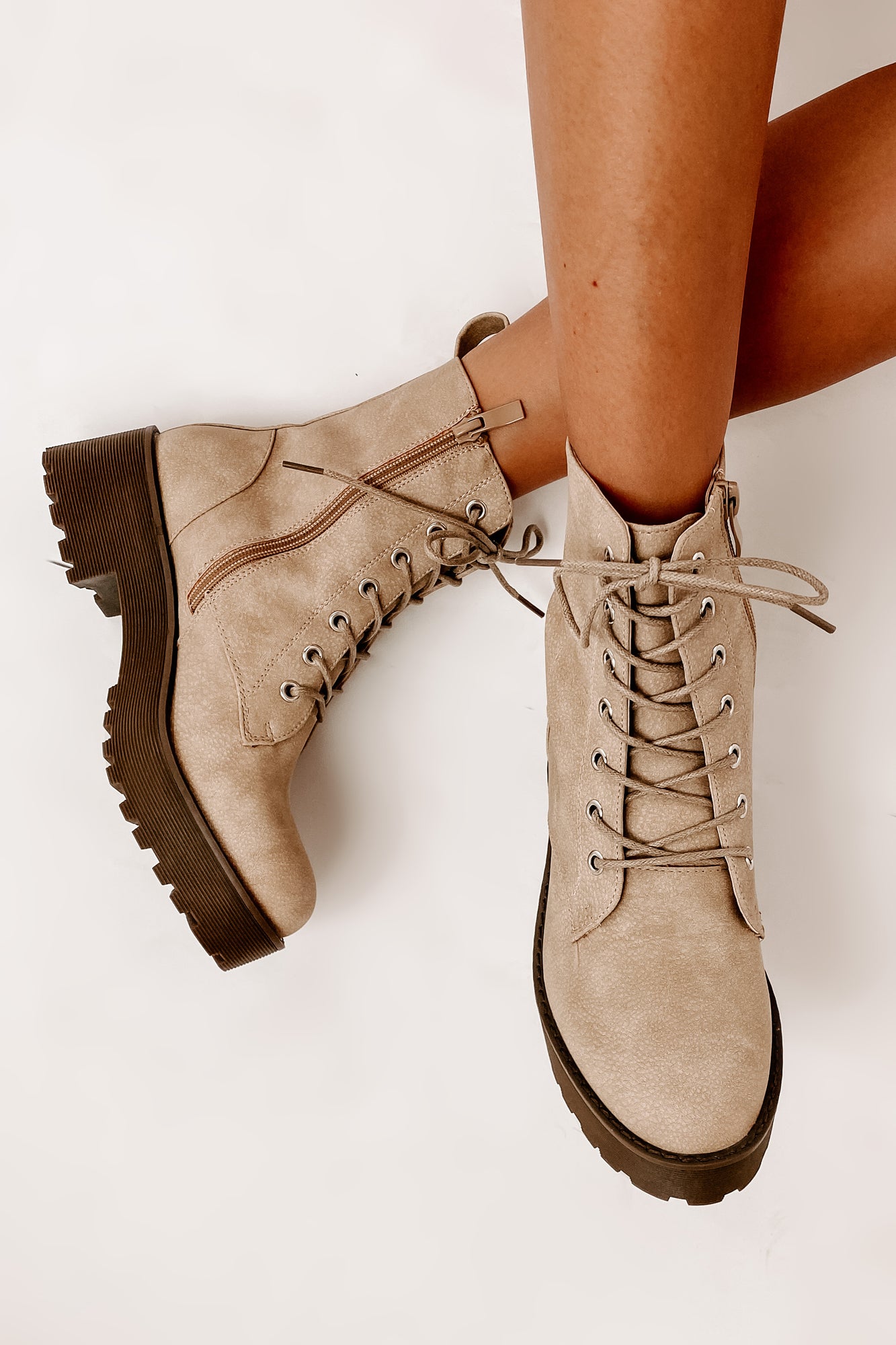 Make Every Outfit Stand Out With These Natural Colored. Faux Leather. Lace-Front. Chunky Combat Boots!