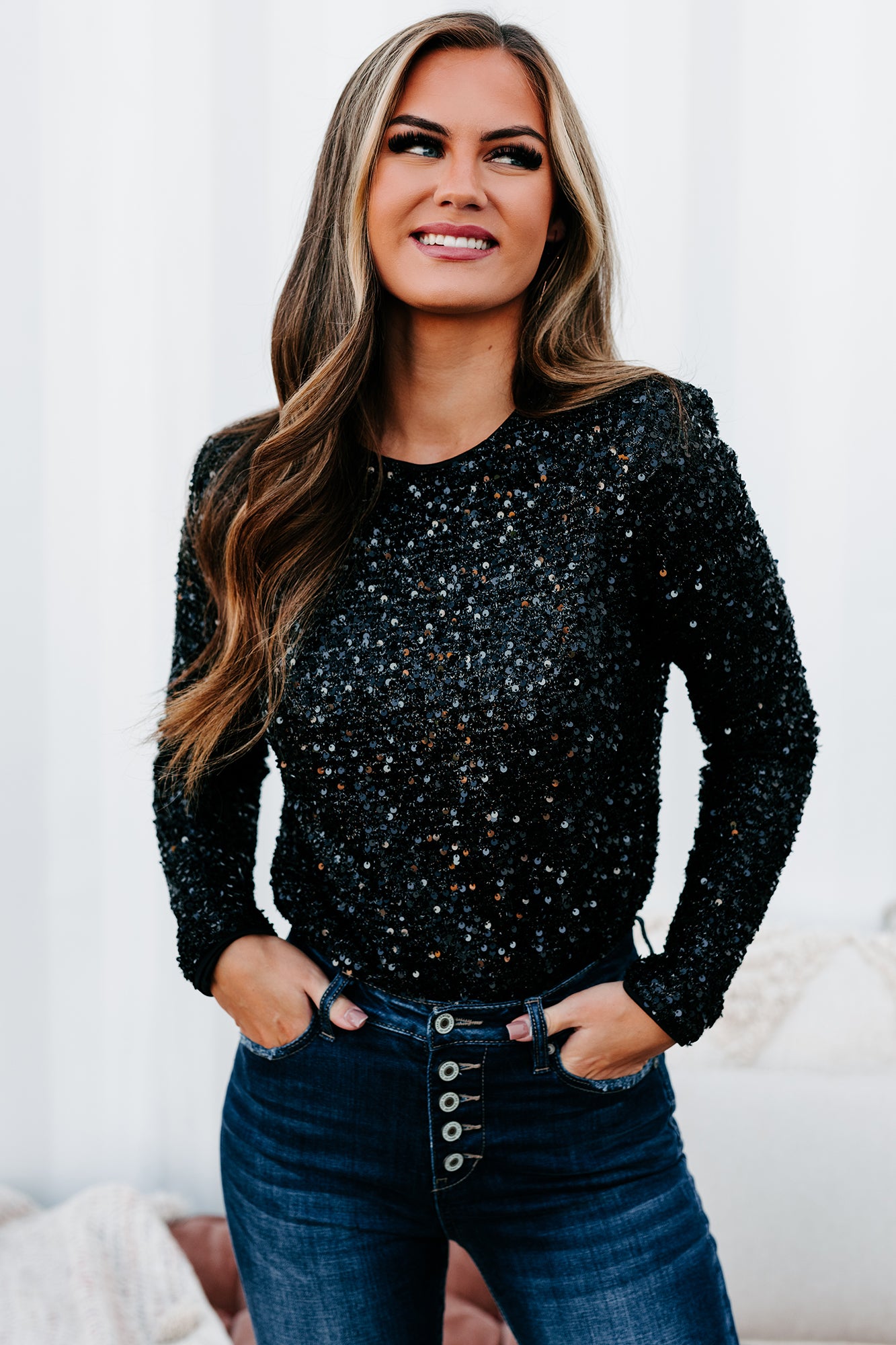 This Black. Long Sleeve. Sequin Bodysuit Will Make You Stand Out In A Crowd!