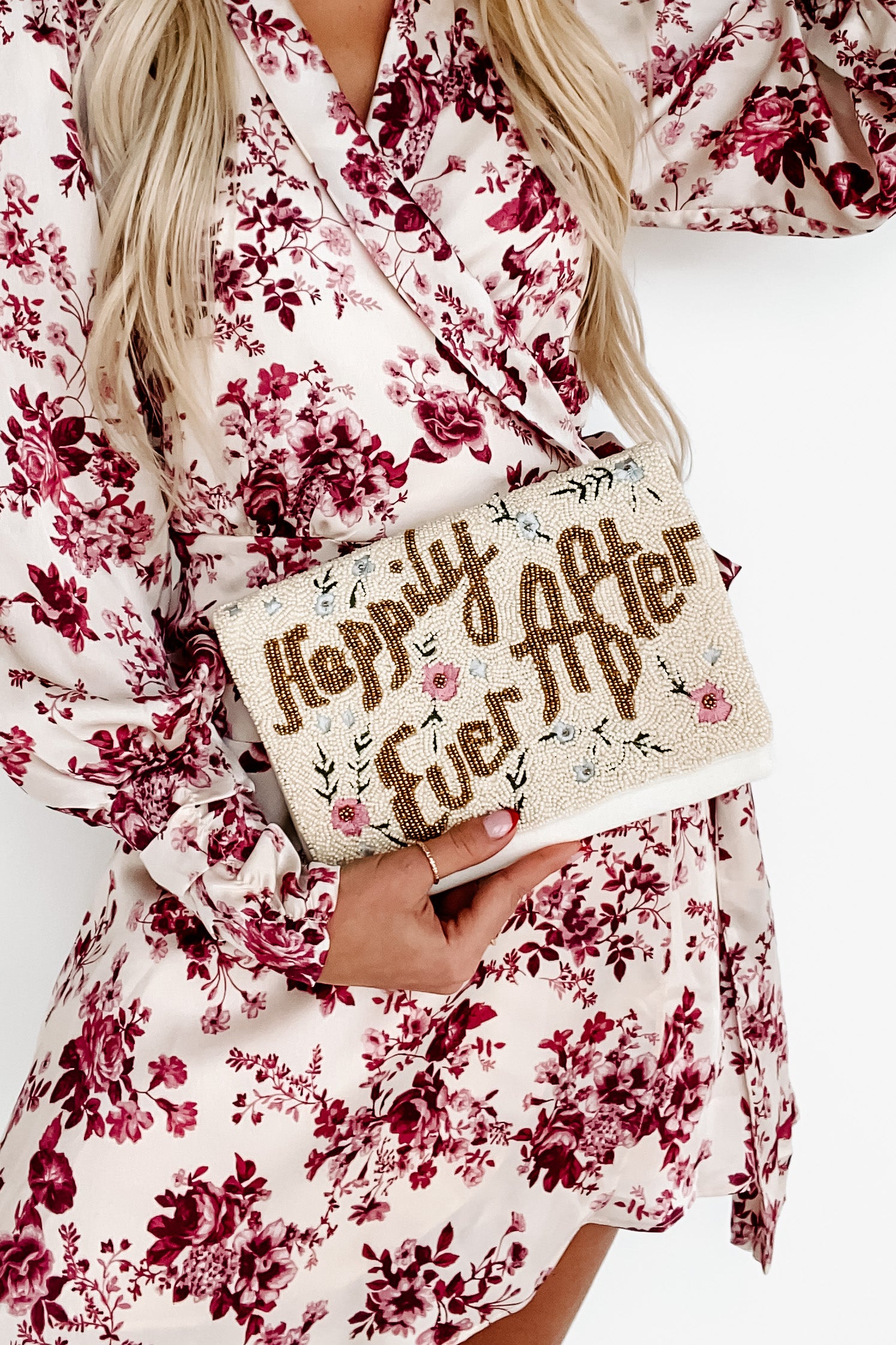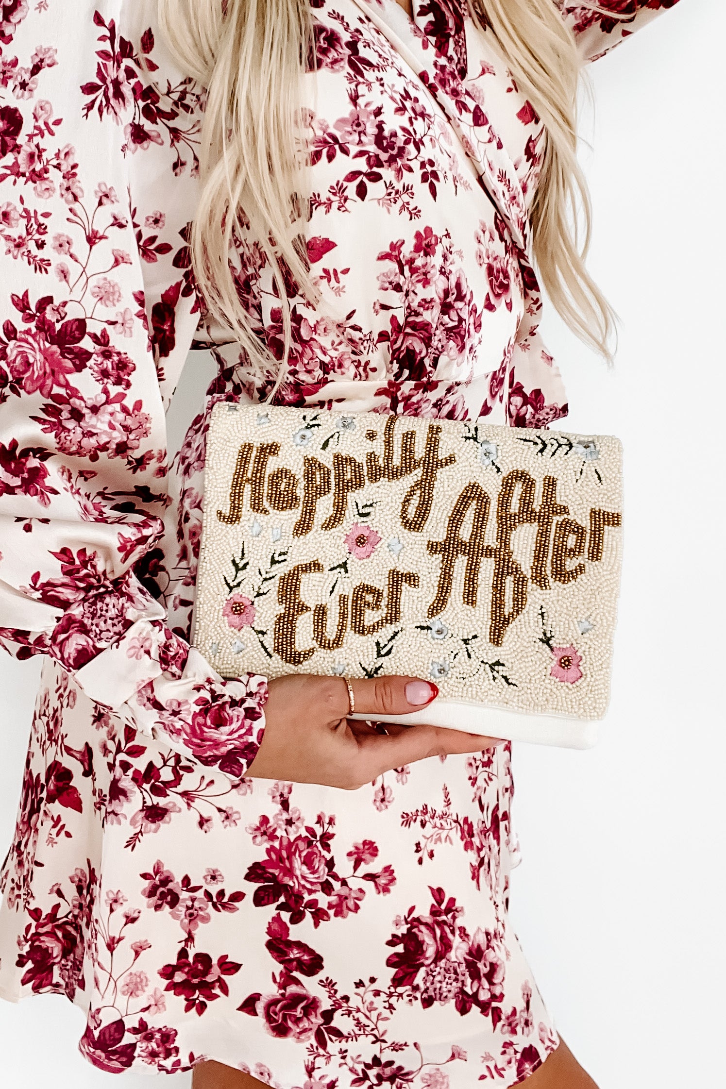 Never Feel Like You Don't Have A Purse To Match Your Outfit Because This Ivory & Gold "Happily Ever After" Beaded Clutch Is The Answer!