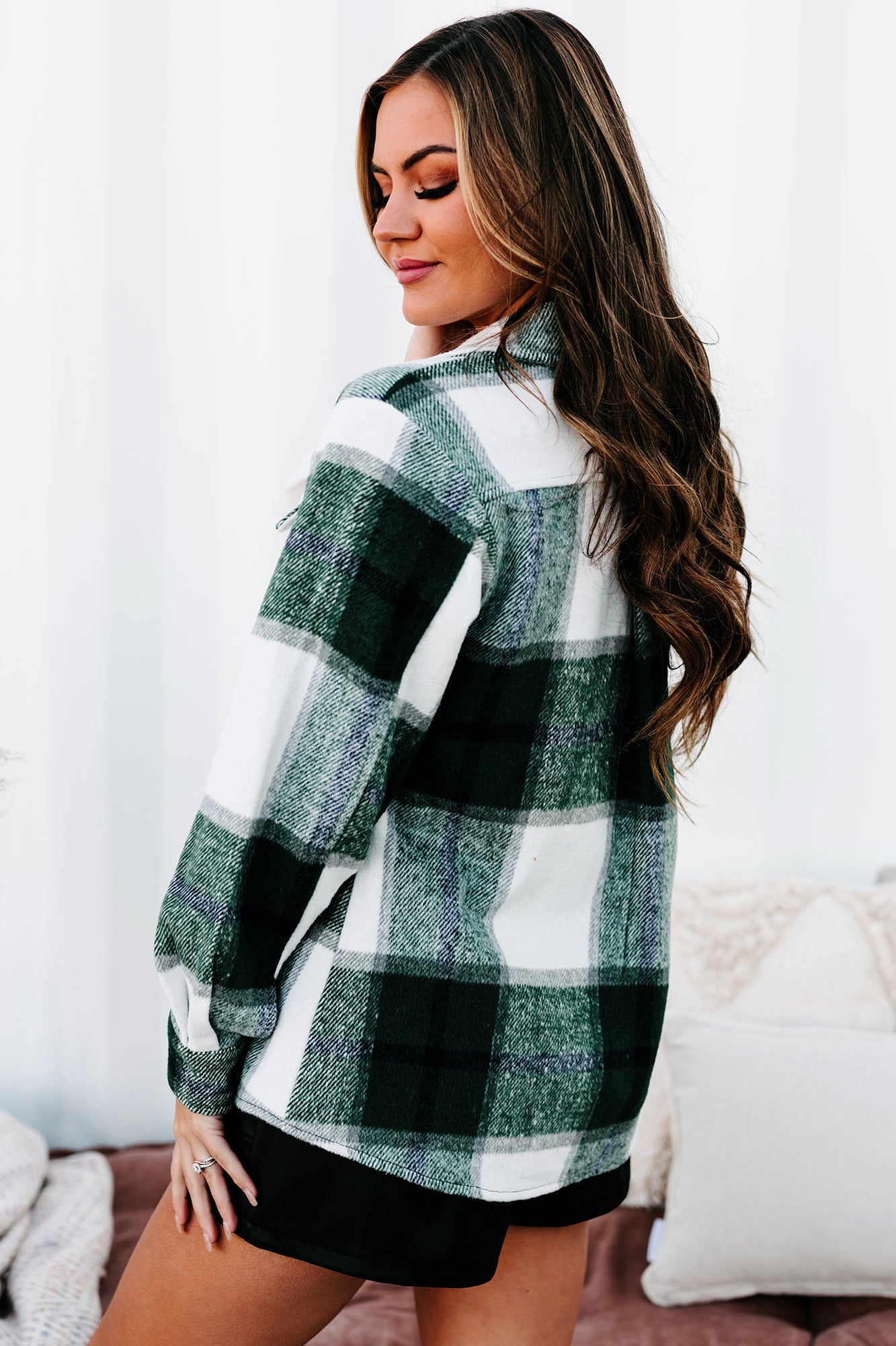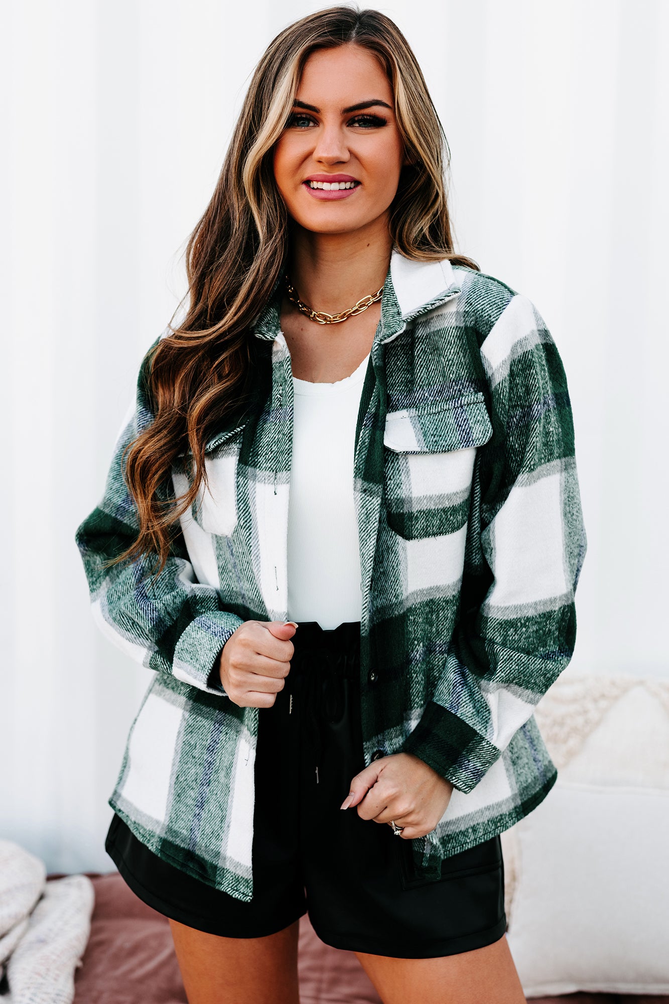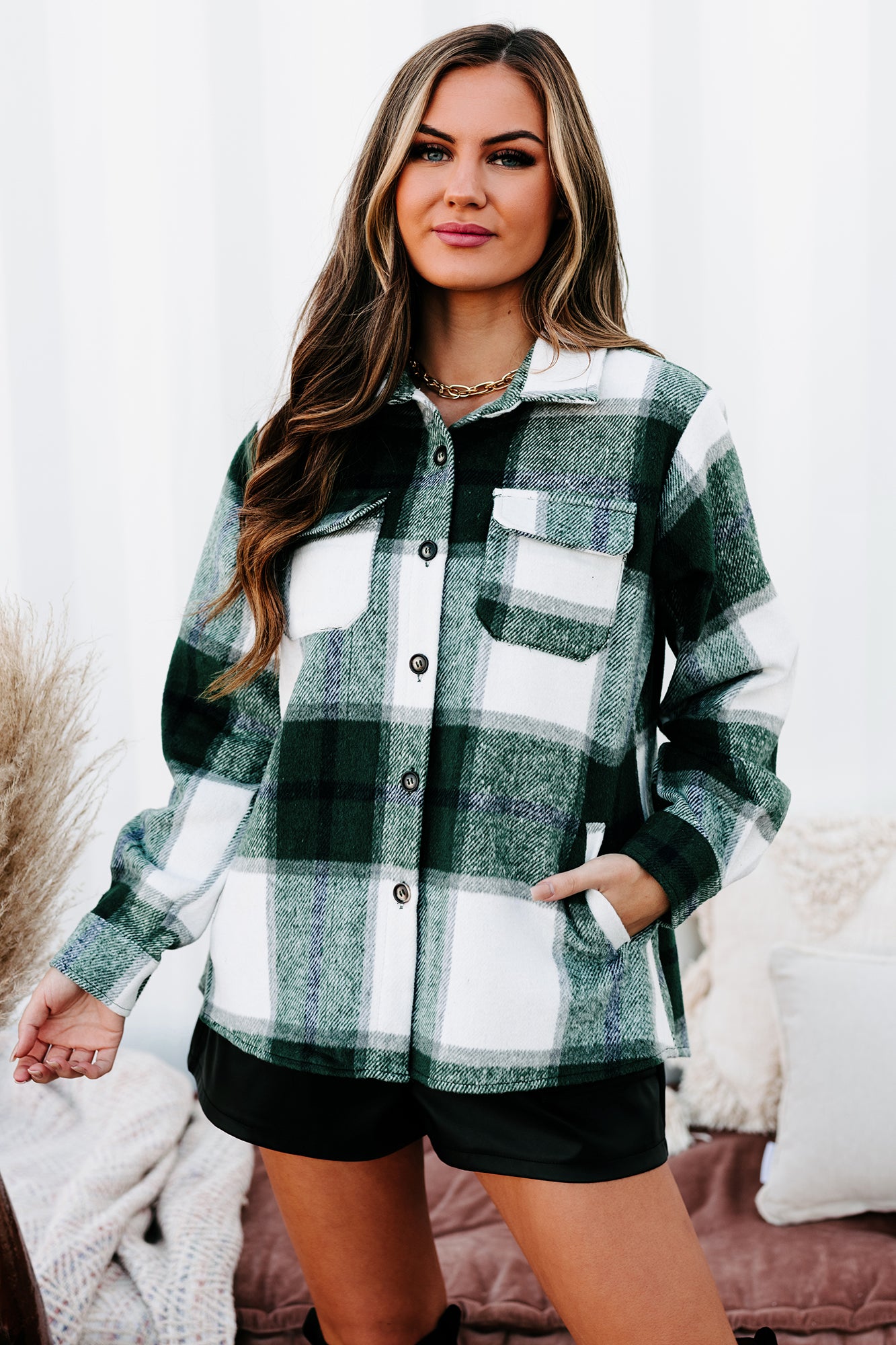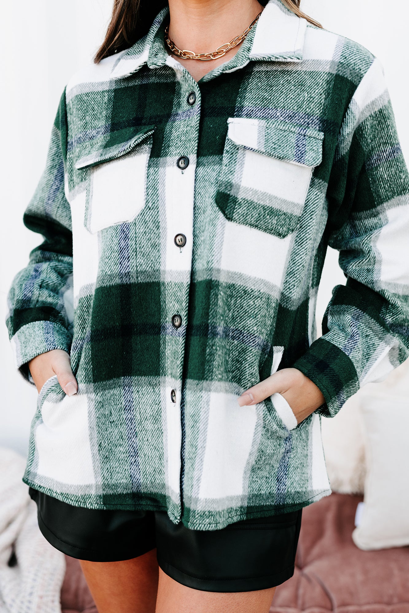 Green Is So On-Trend For The Season So Snag This Hunter Green. Oversized Plaid Shacket Now!