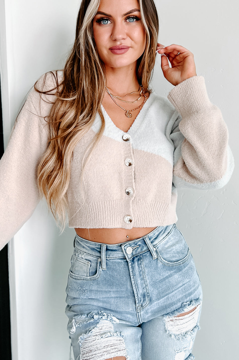 This Patterned. Two Tone Cardigan Is Cute And Will Pair Well With Any Jeans In Your Closet!