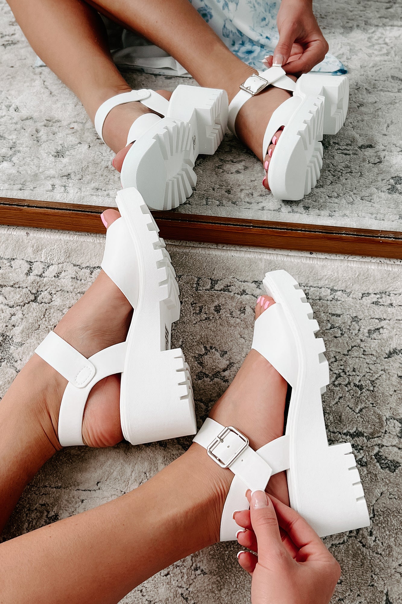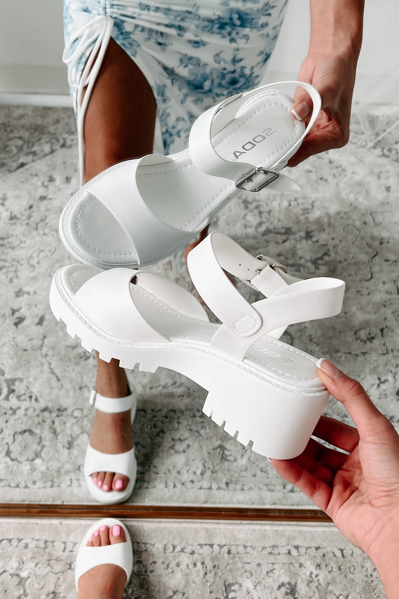 Just Having Fun Chunky Heel Sandal (White)