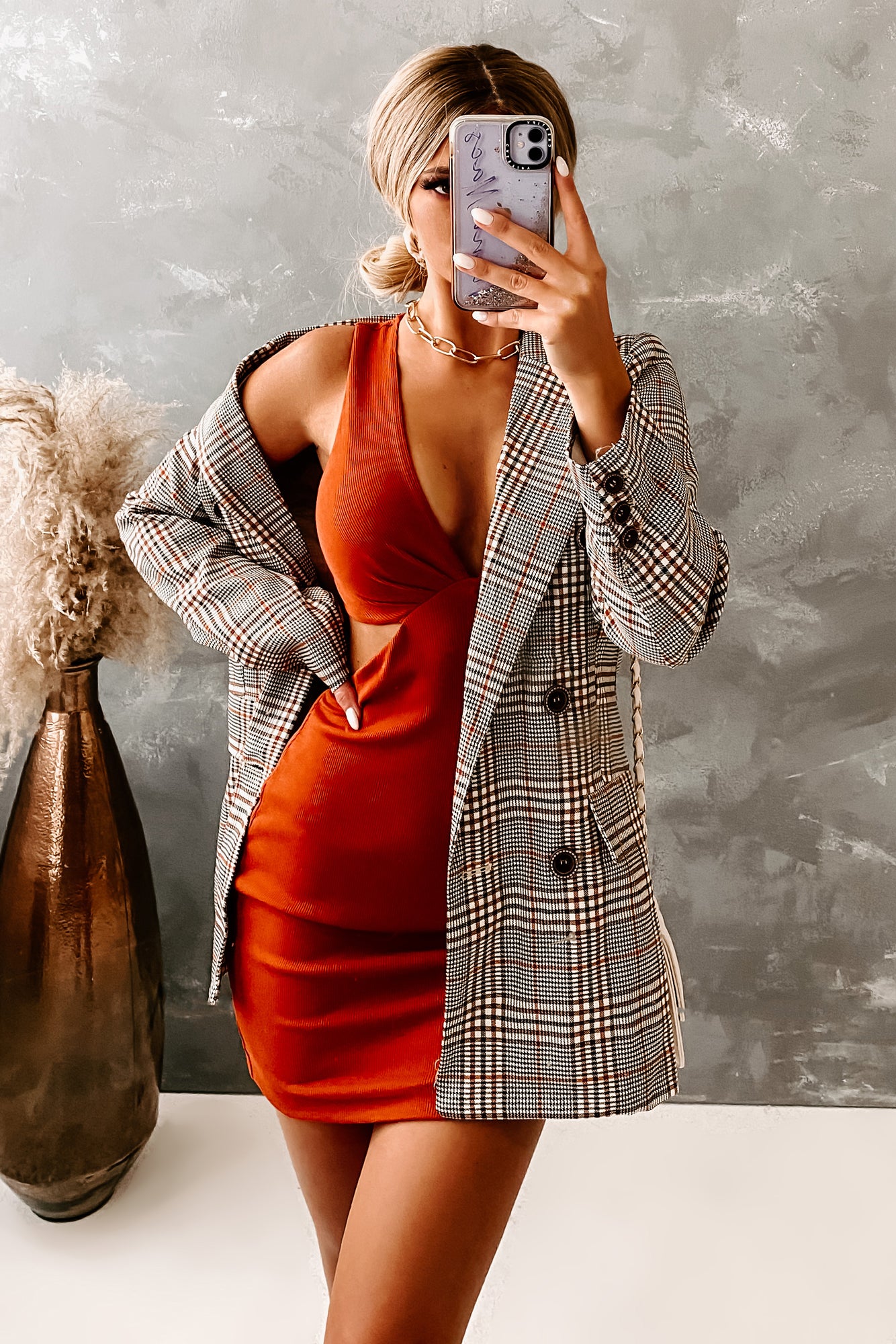 This midweight plaid button up jacket is perfection for those brisk fall days!