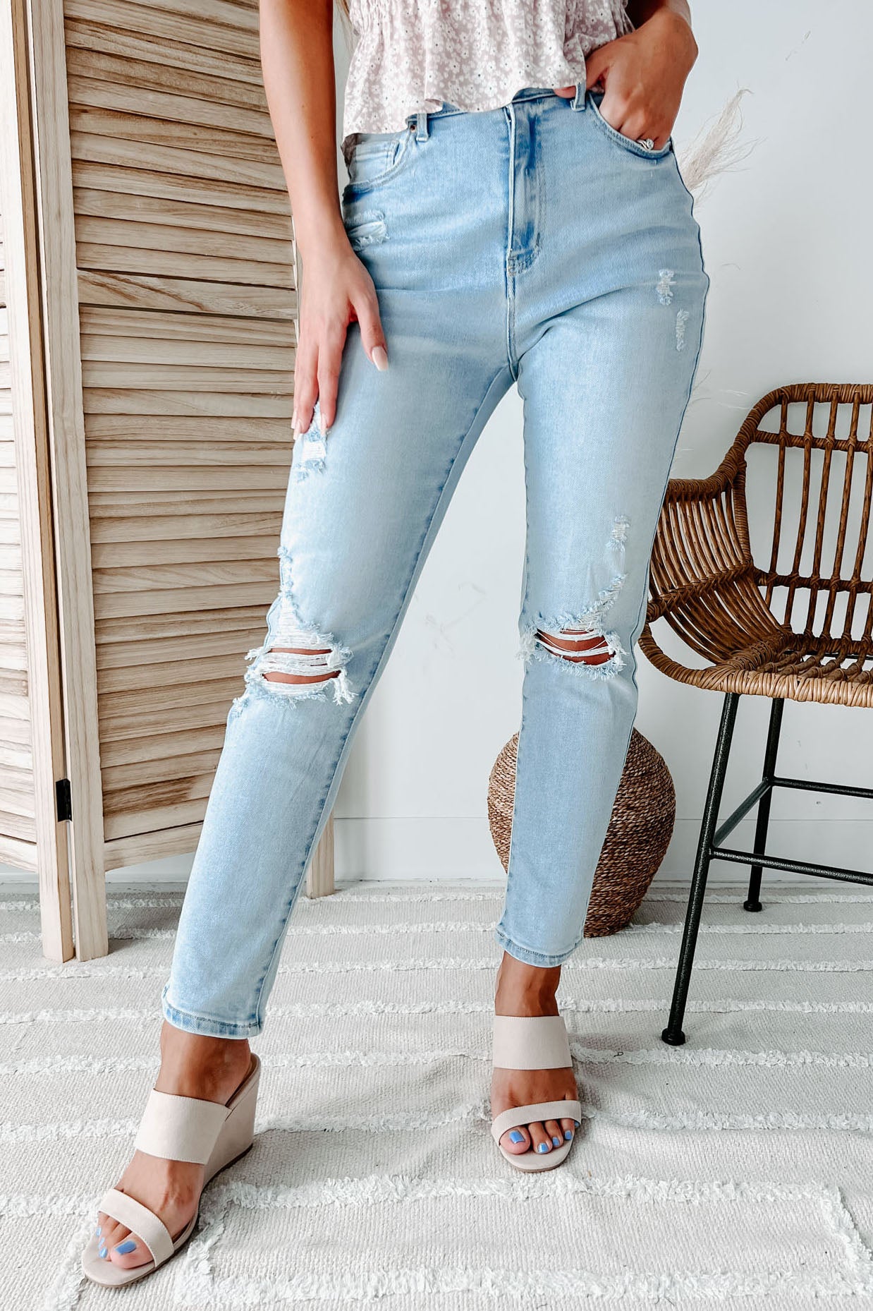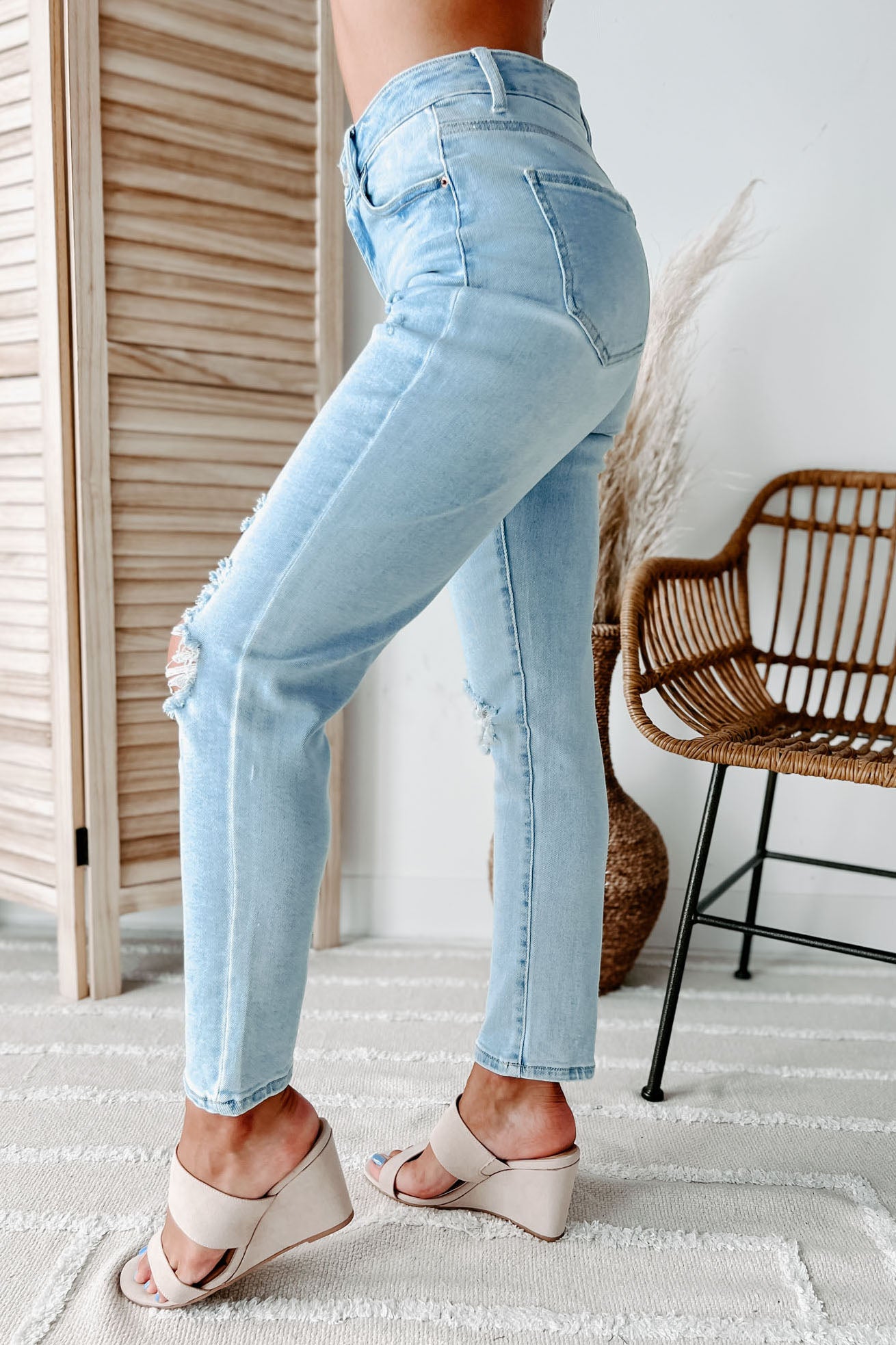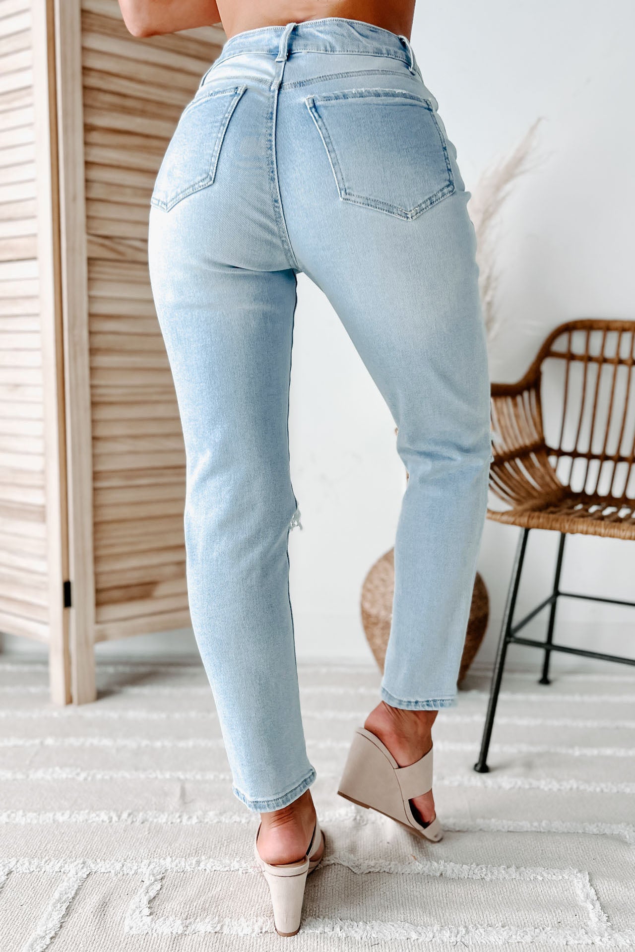 Everyone Needs A Good Pair Of Mom Jeans And These Light Wash. Distressed Jeans. Are The Perfect Pair!