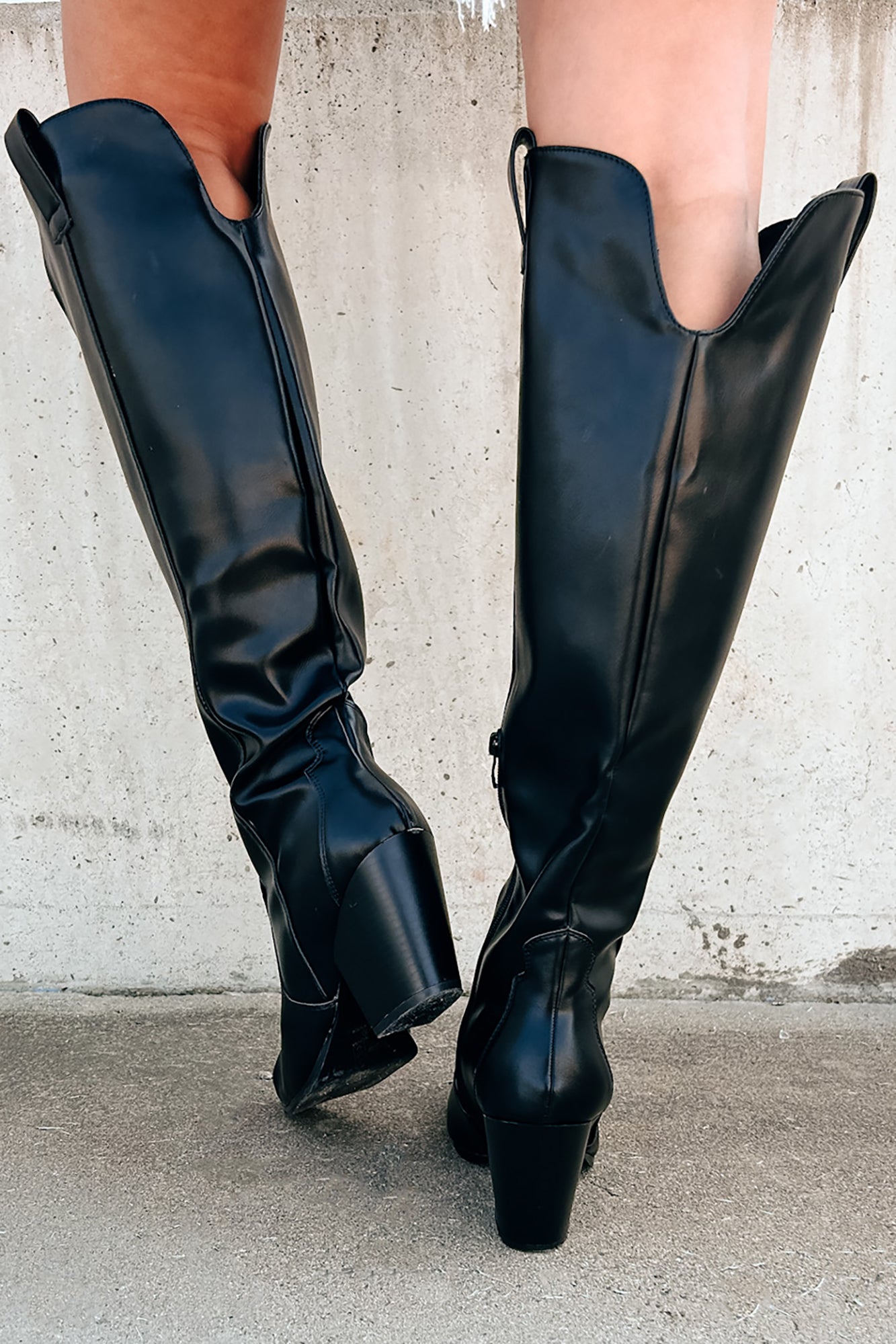 Keep Walking Knee High Faux Leather Western Boots (Black)
