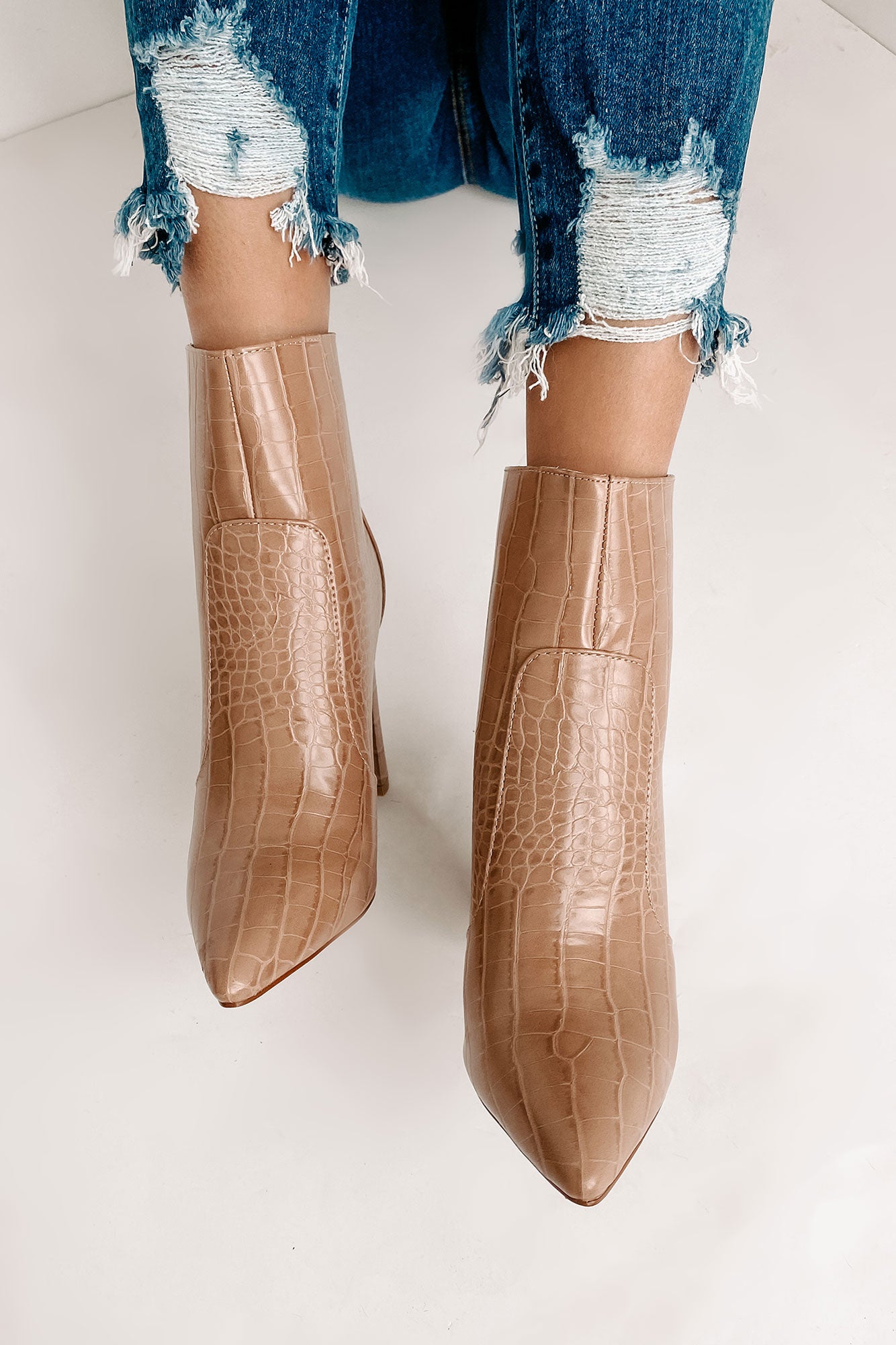 Keeping It Up Faux Croc Booties (Nude Croc)