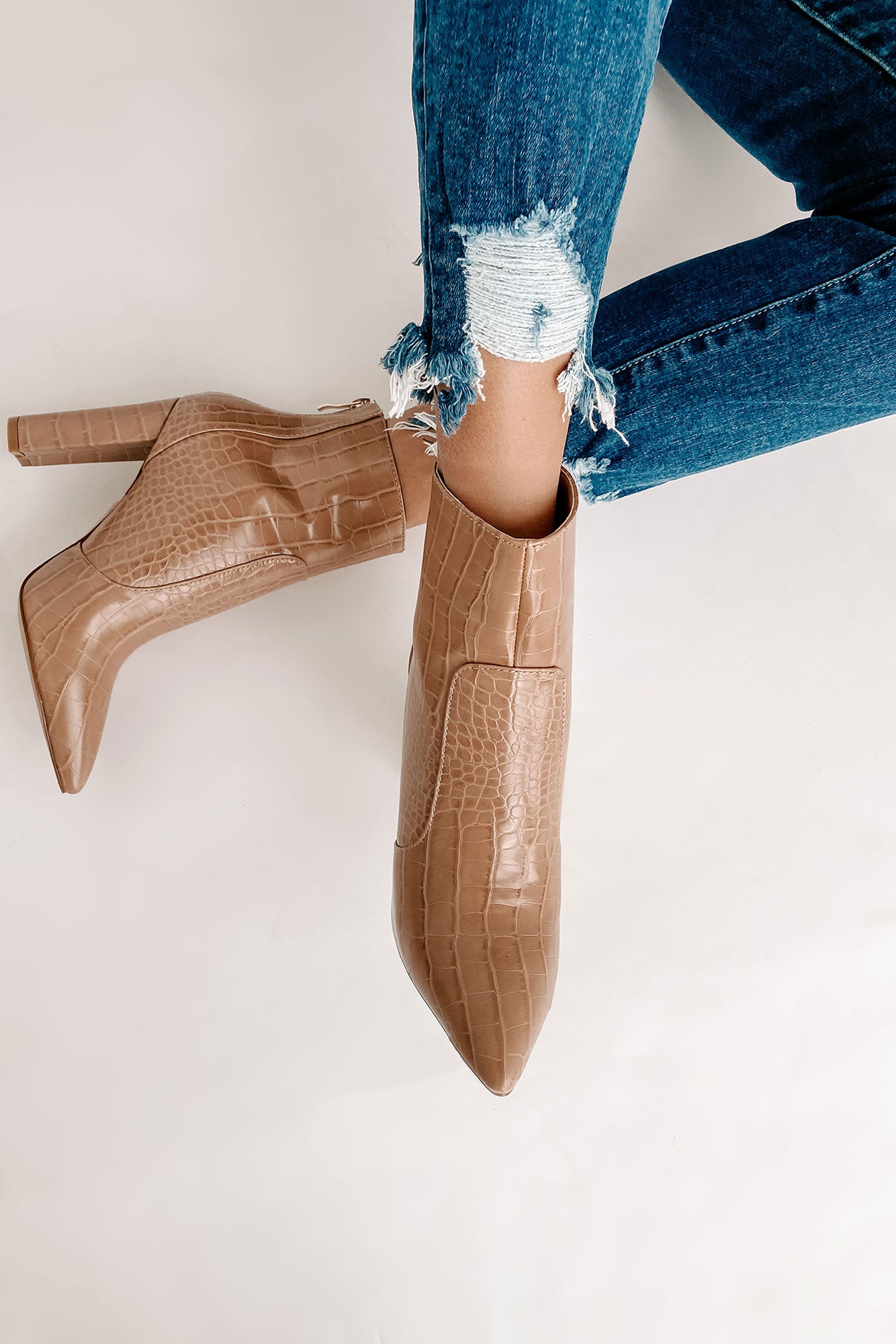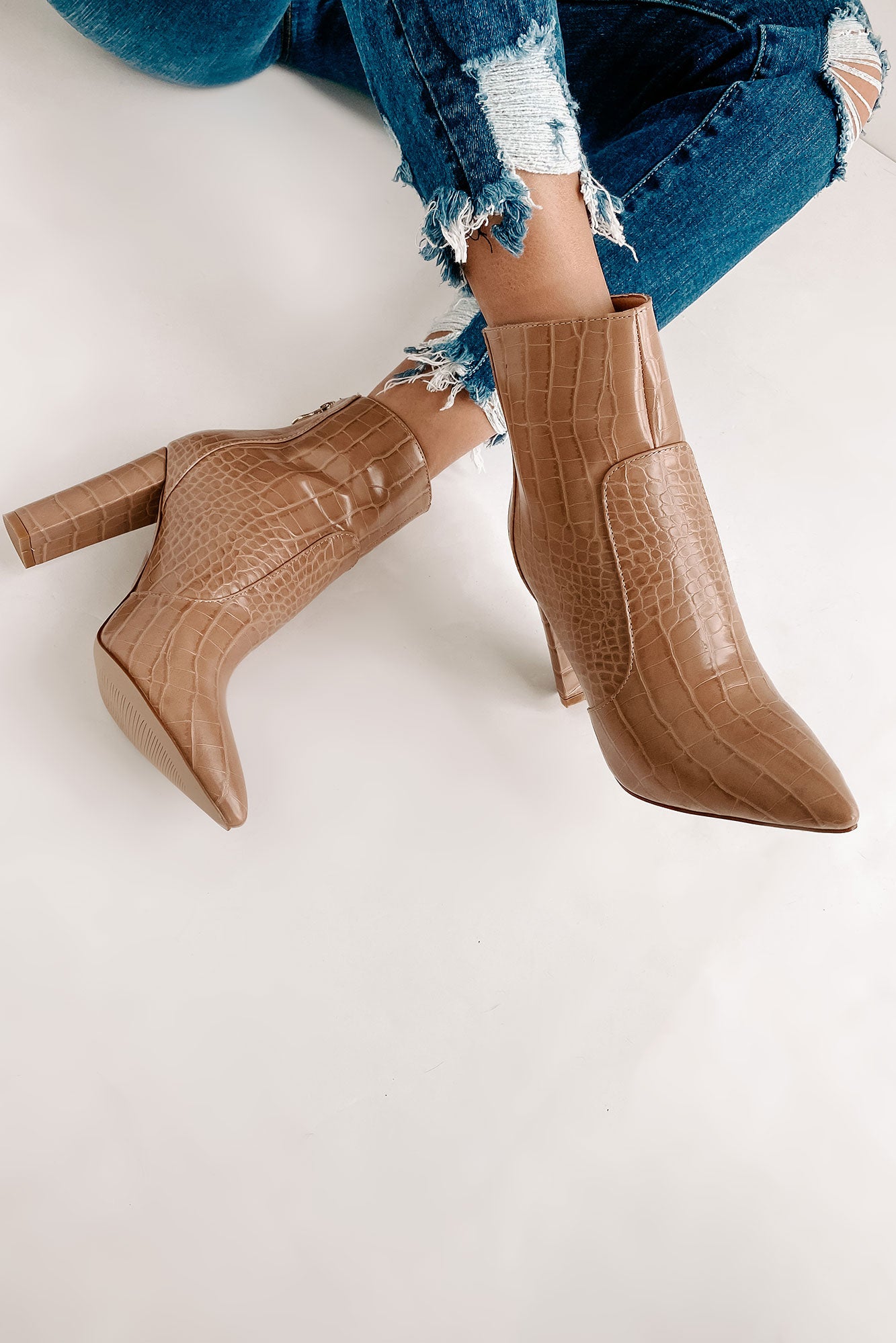 Keep Up With The Style In These Nude. Faux Croc Booties!