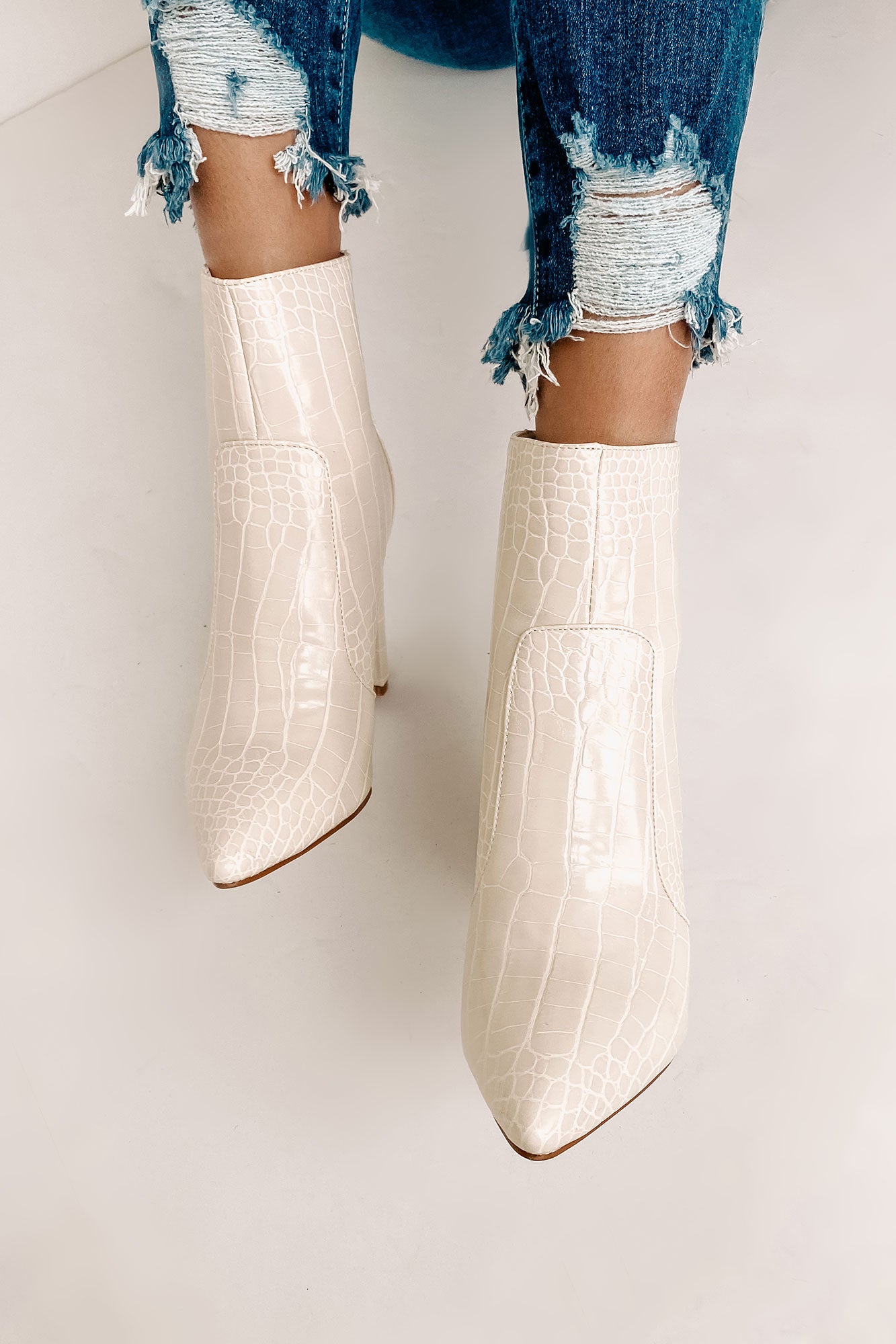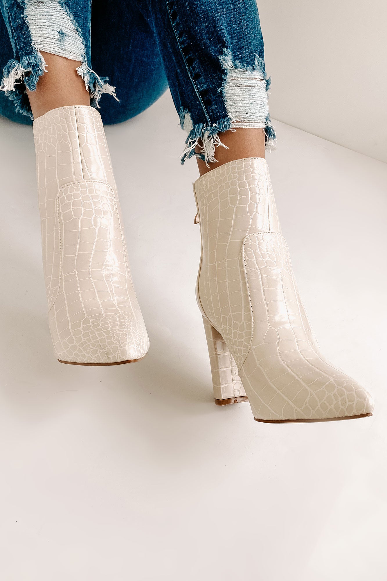 Keeping It Up Faux Croc Booties (Whipped Cream)