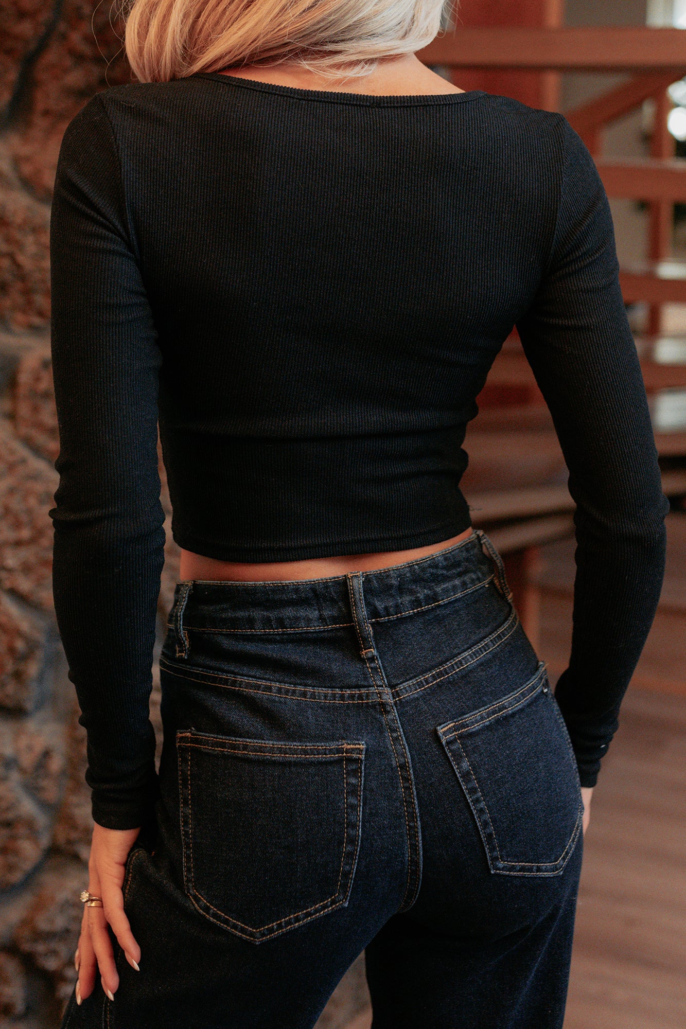 Keyana Scoop Neck Long Sleeve Top (Black)