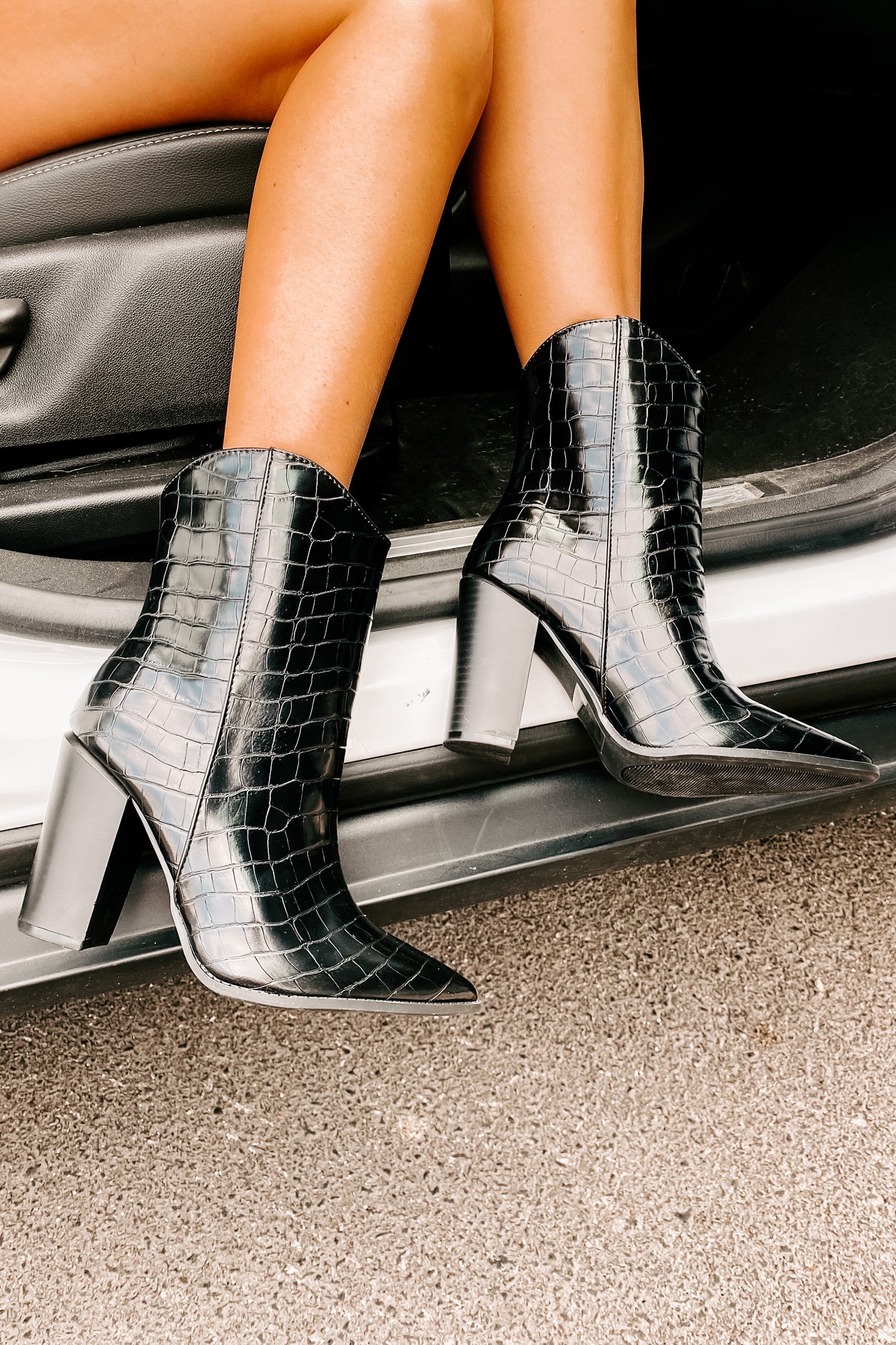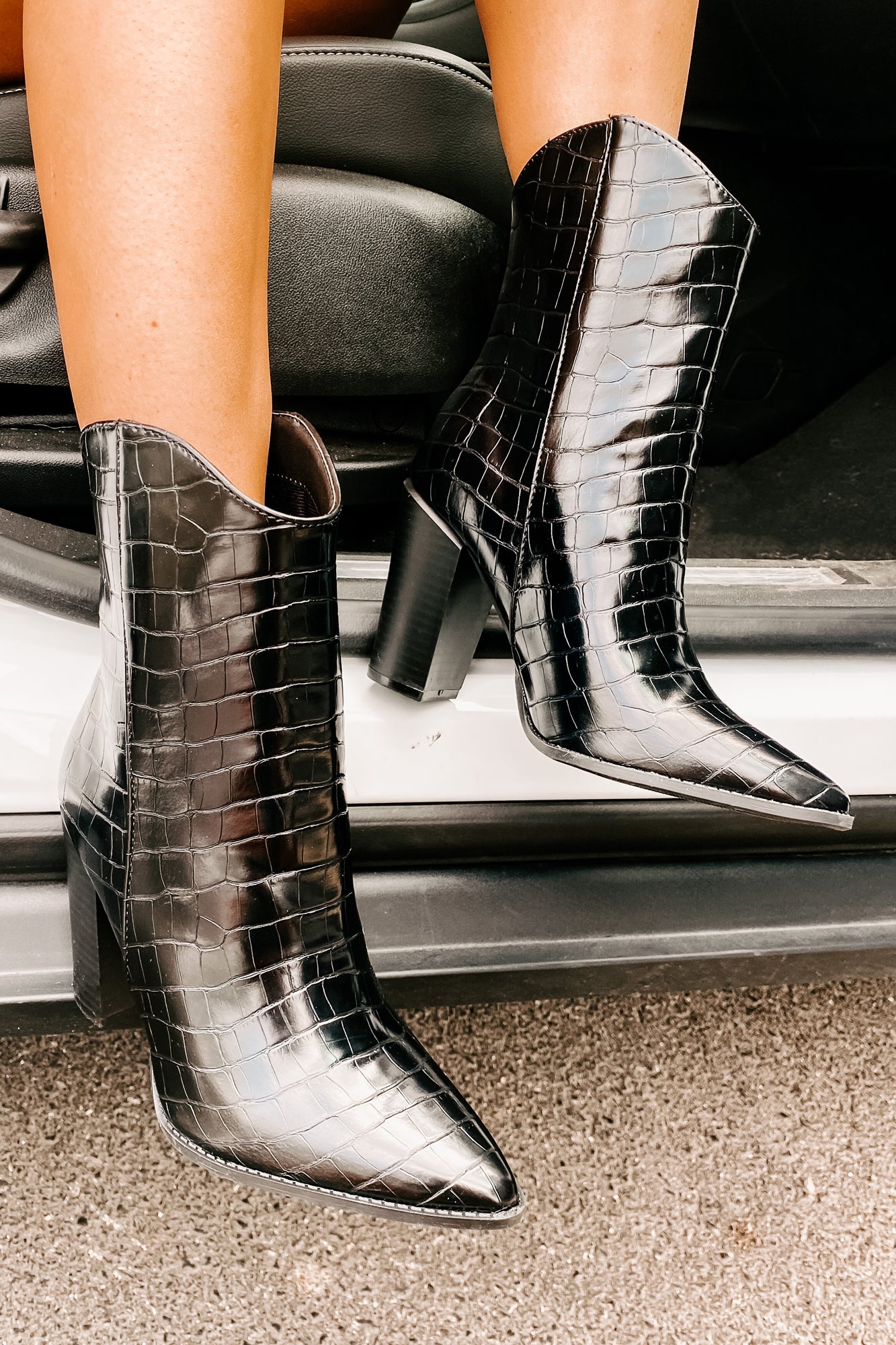 Strut Your Stuff In These Amazing. Black. Faux Leather. Croc Print. Heeled. Cowboy Booties!