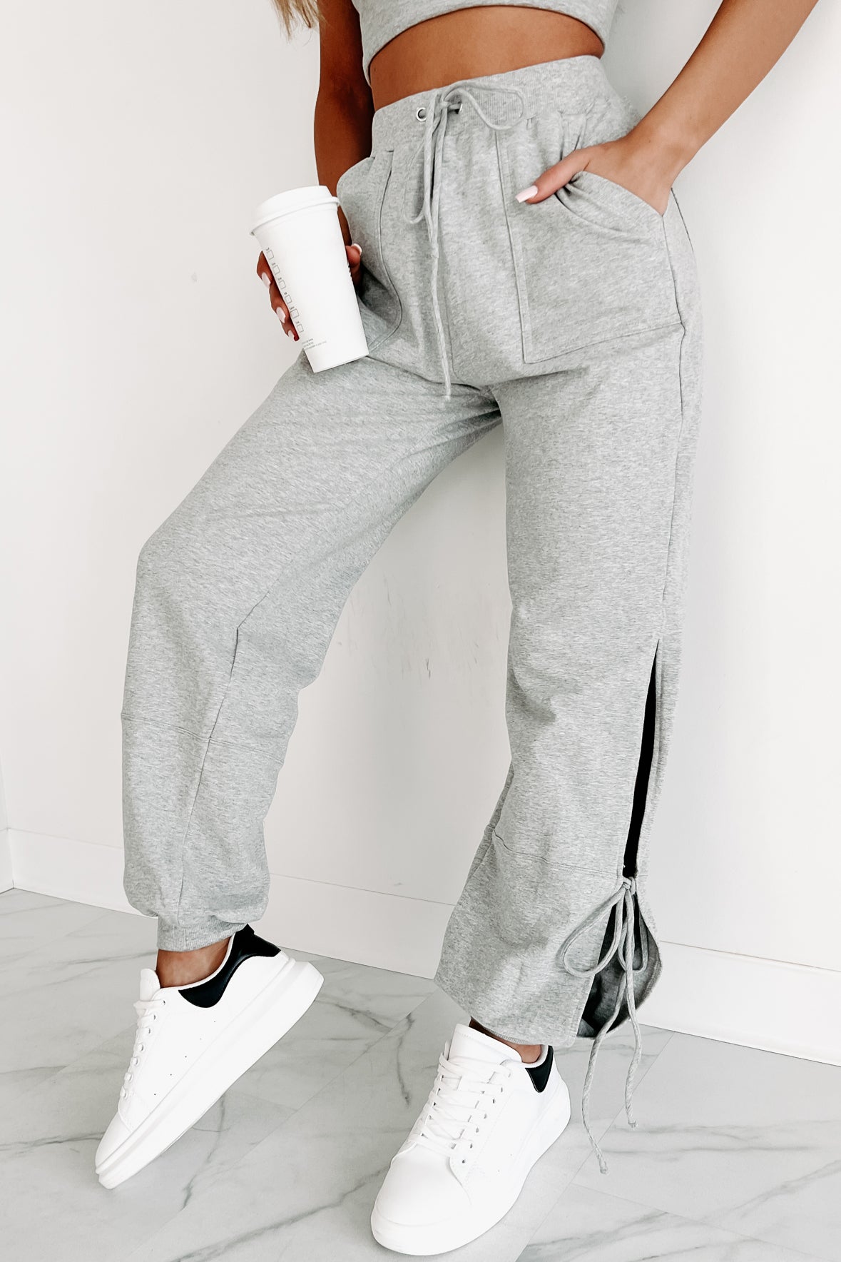 IF YOU'RE LOOKING FOR COMFORT AND TAKE HALF THE TIME TO GET READY. THIS TWO PIECE JOGGER SET IS THE ANSWER! COMPLETE WITH A CROPPED TANK WITH RACERBACK CRISS CROSS DETAIL AND JOGGERS WITH A SIDE SLIT ON THE LEG OF THE JOGGERS FOR A LITTLE BIT MORE OF AN LIFTED LOOK!