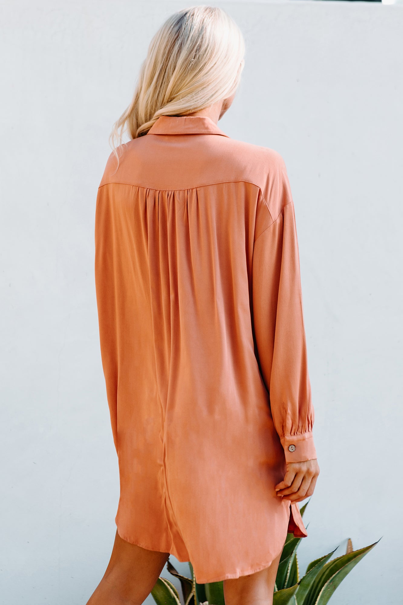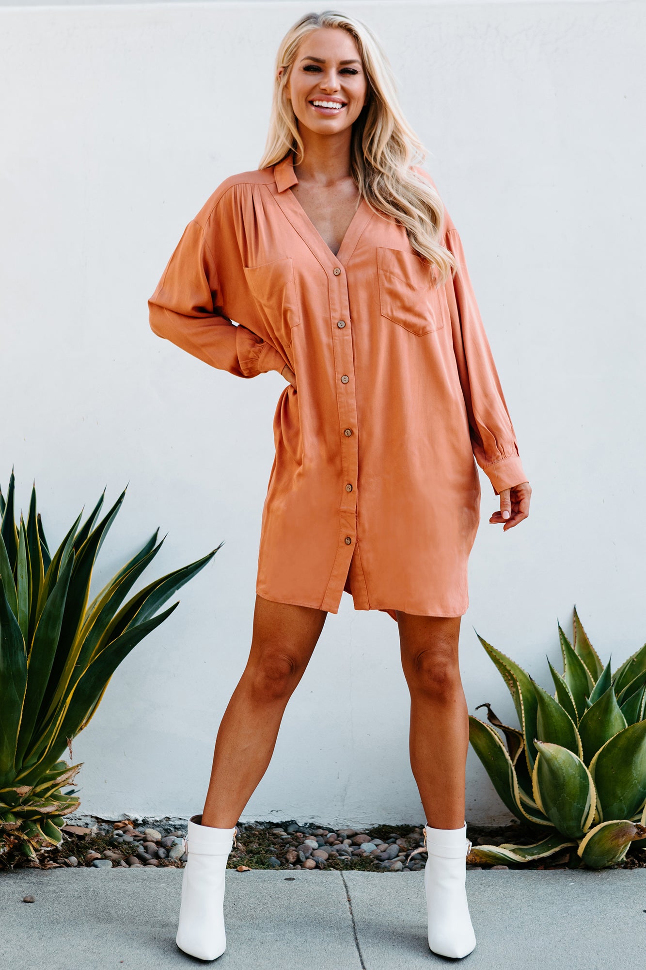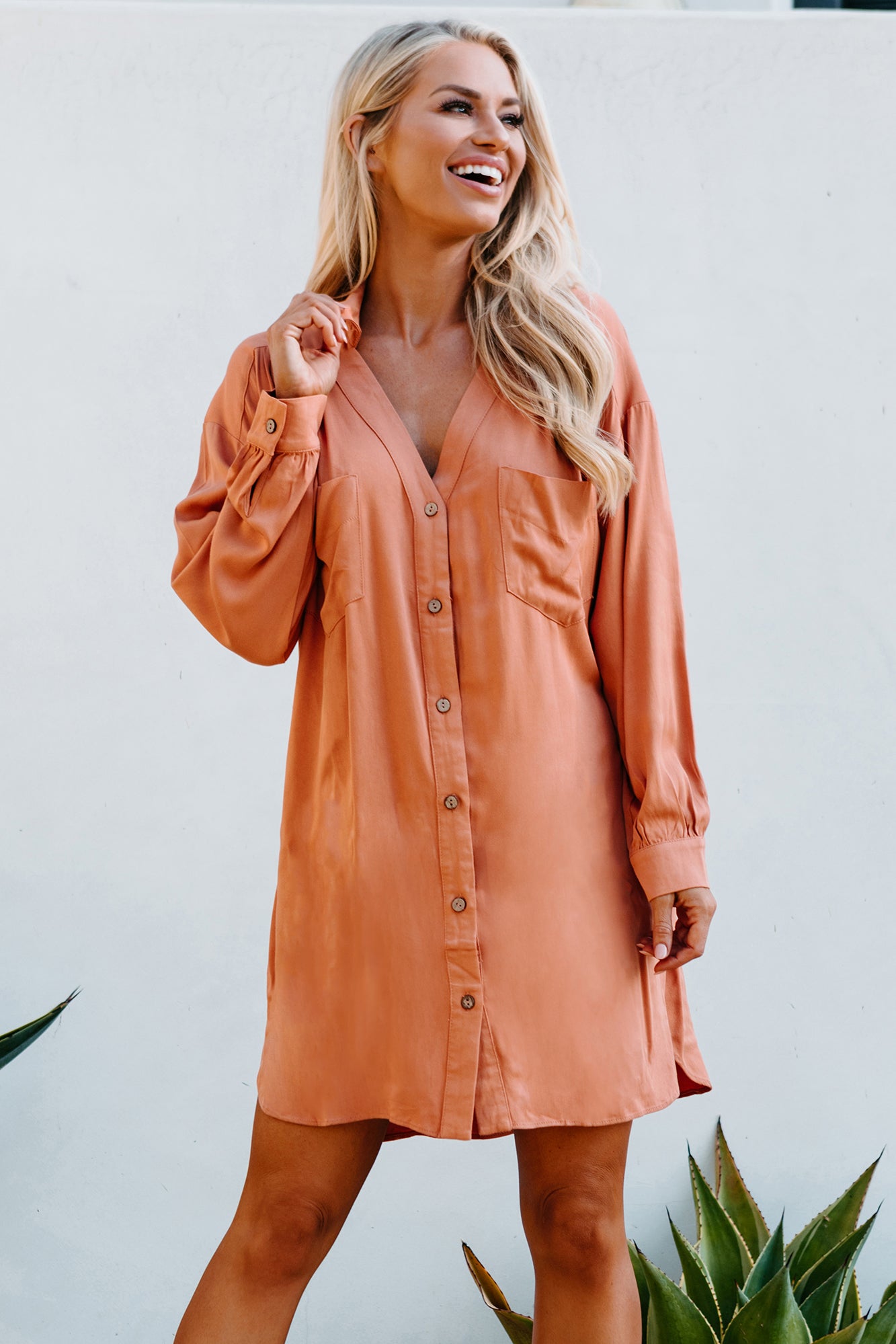 We Are Obsessing Over This Button Down Long Sleeve Desert Mist Tunic Dress!