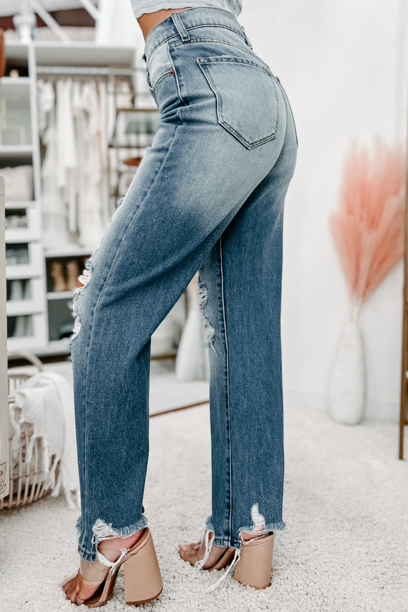 These High Rise Distressed. Dad Jeans Are Perfect For Any Casual Day Outtings!