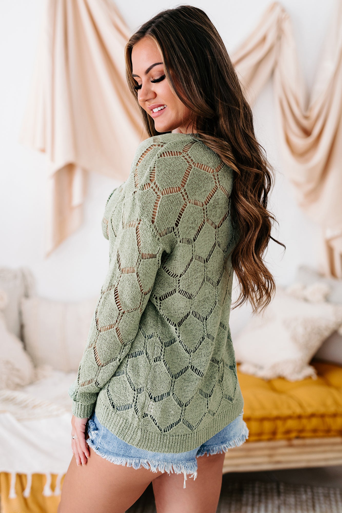 Add this lightweight. geometric knit sweater to any look and give your style a new twist!