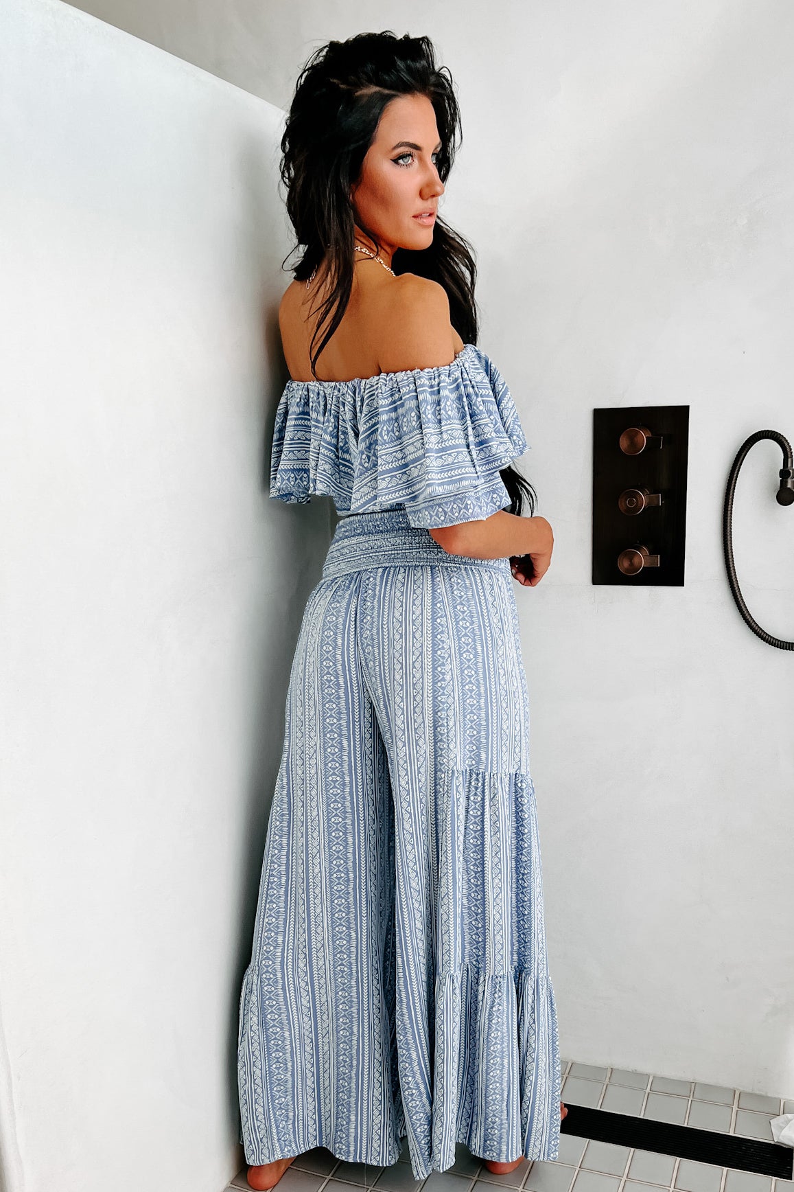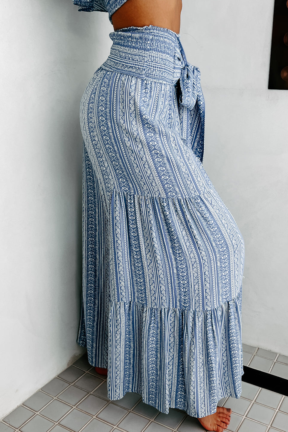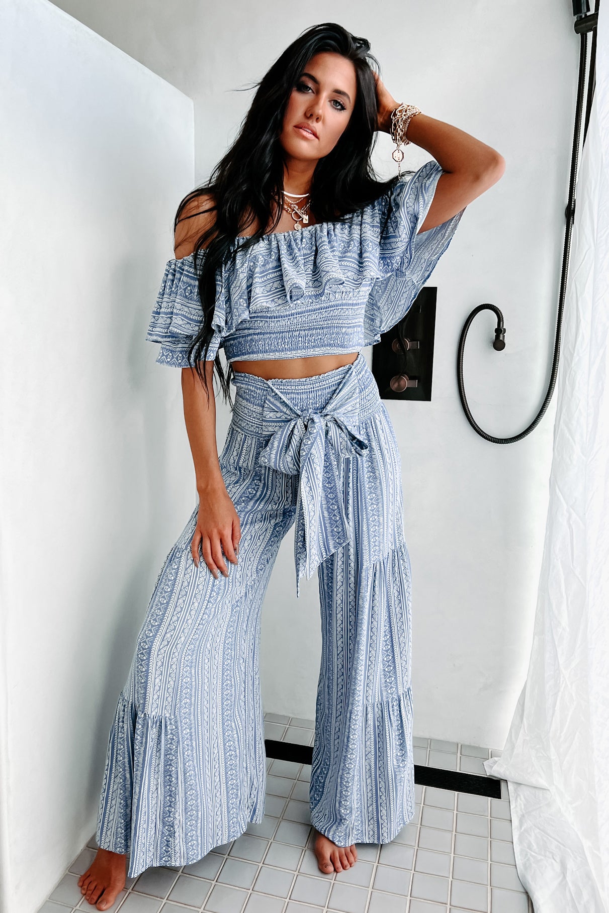 - Matching Top: "Storied Pasts Ruffled Off The Shoulder Printed Crop Top (Blue)"