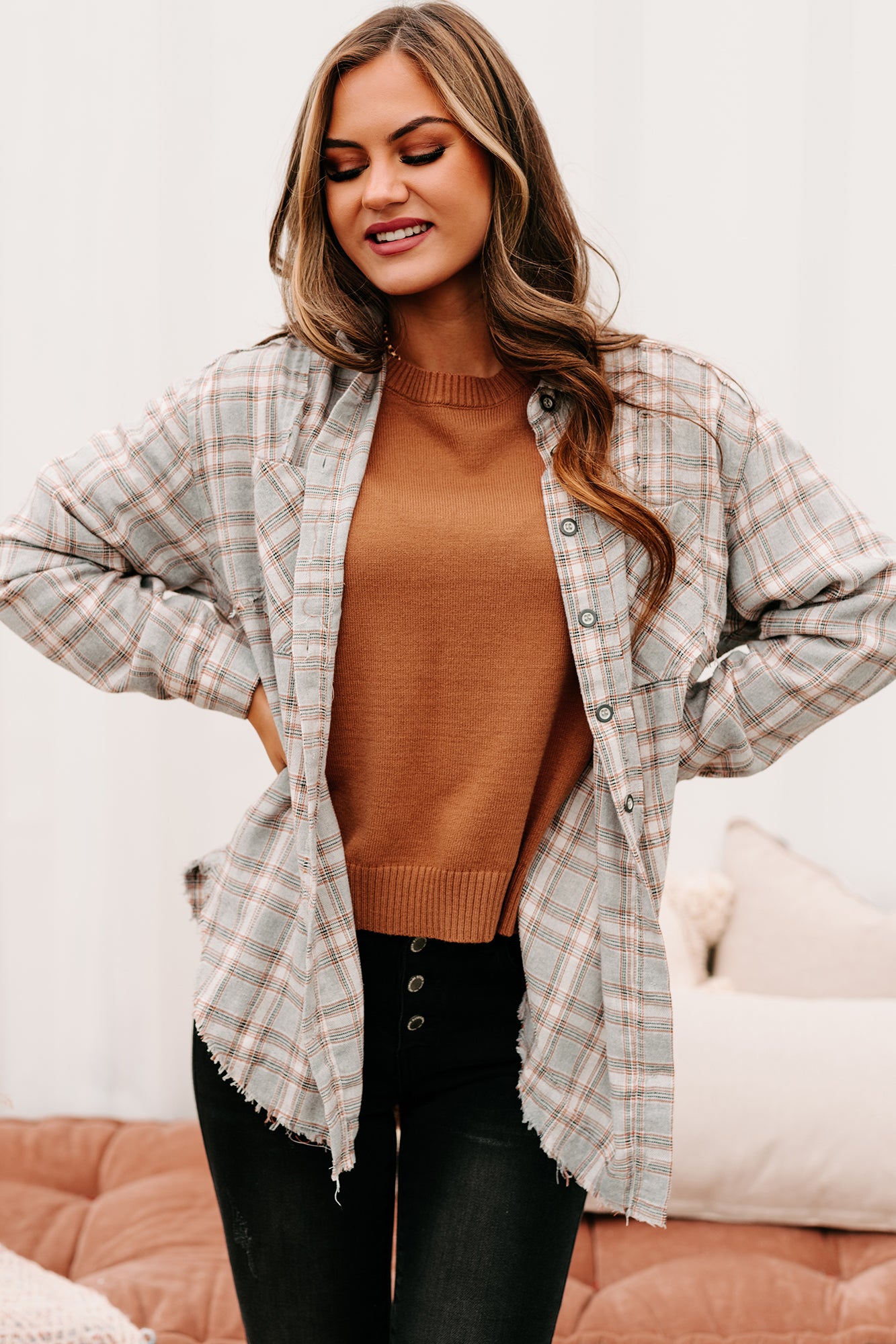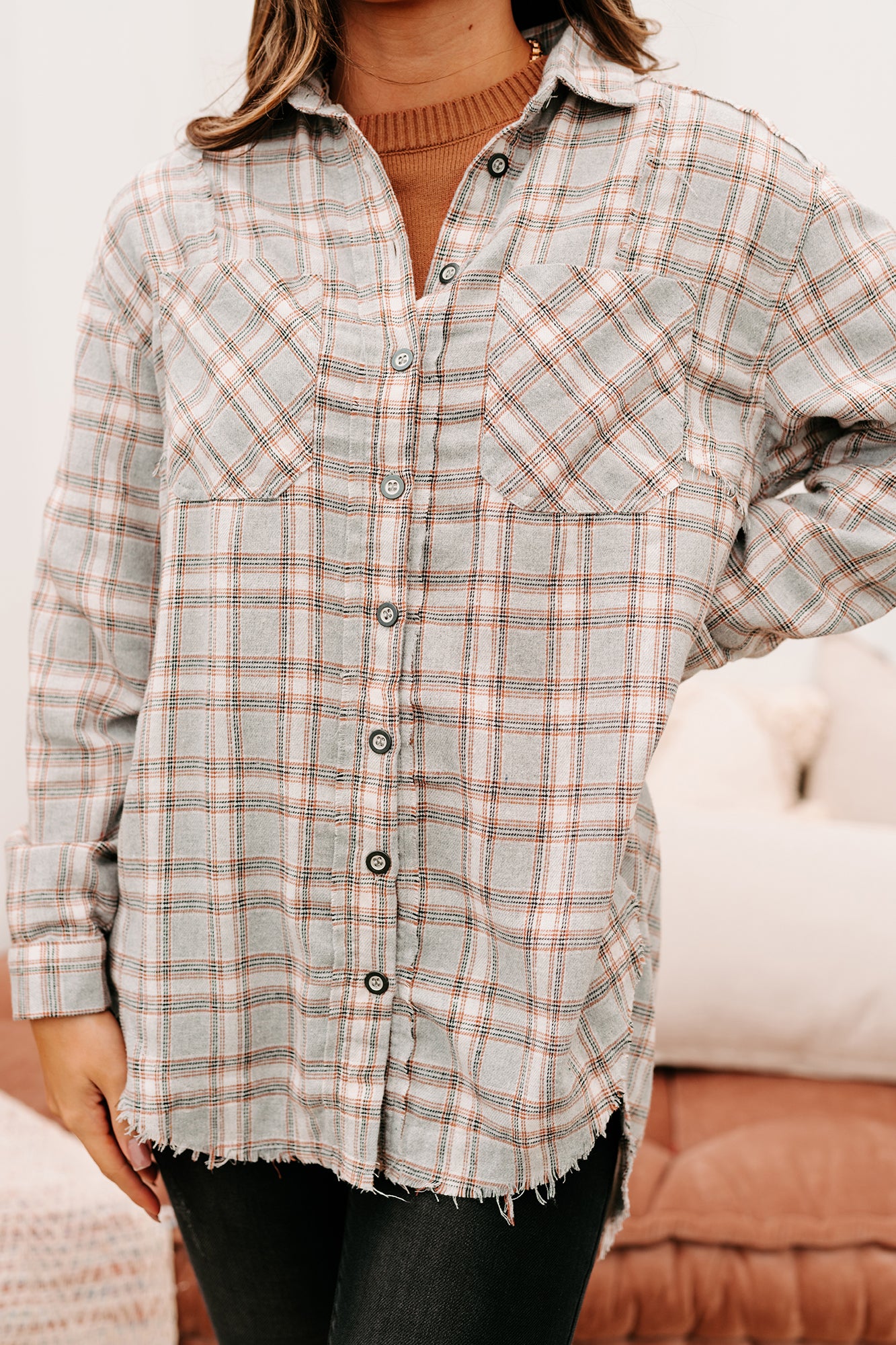 This Grey Plaid. Long Sleeve Top Is A Great Staple To Have In Your Closet!