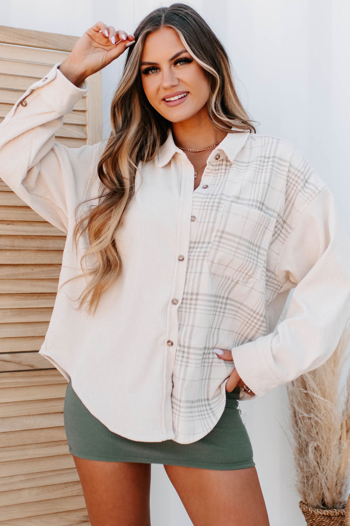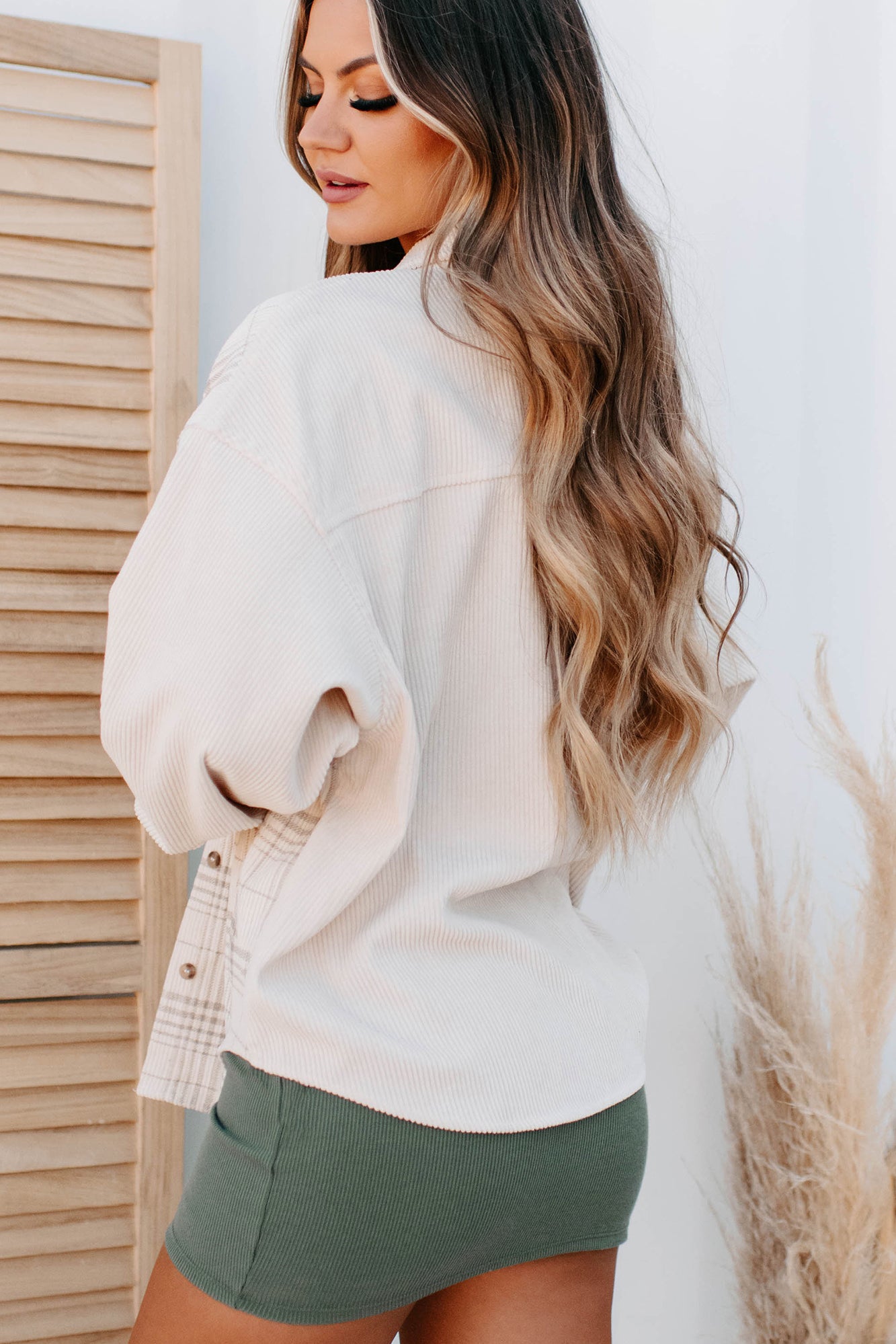 Perfect For Transitioning Into Fall. This Corduroy Shacket Has A Cool. Contrasting Plaid Design That Gives It Something Extra!