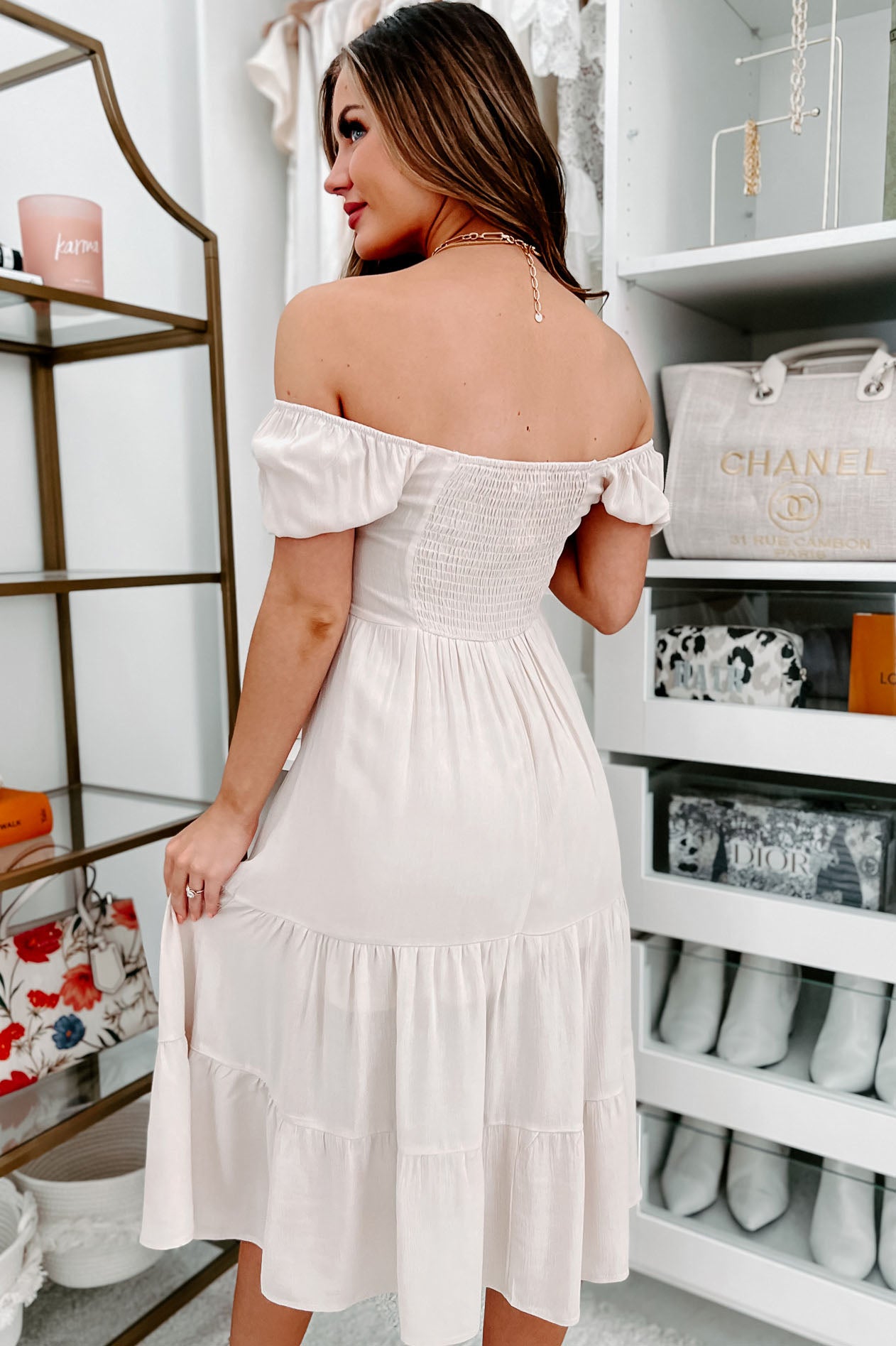 You'll Love The Neutral Color Of This Tiered. Midi Dress Combined With The Flowy Fit!