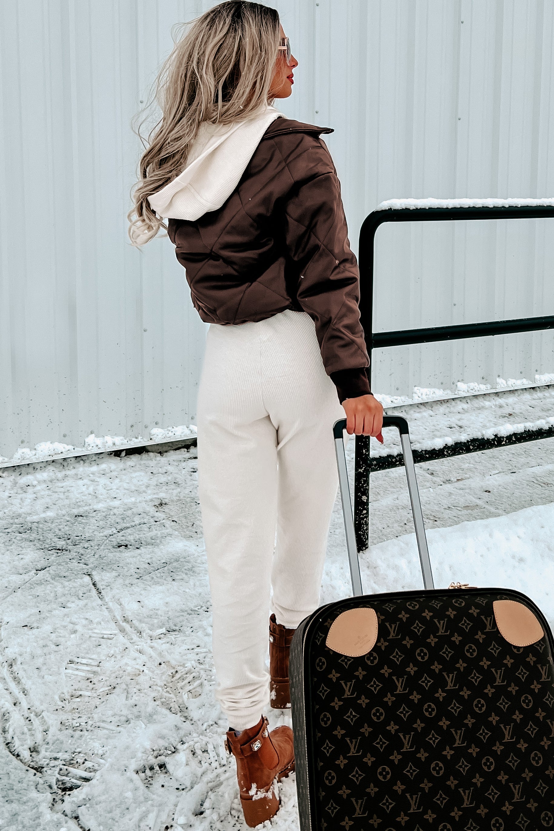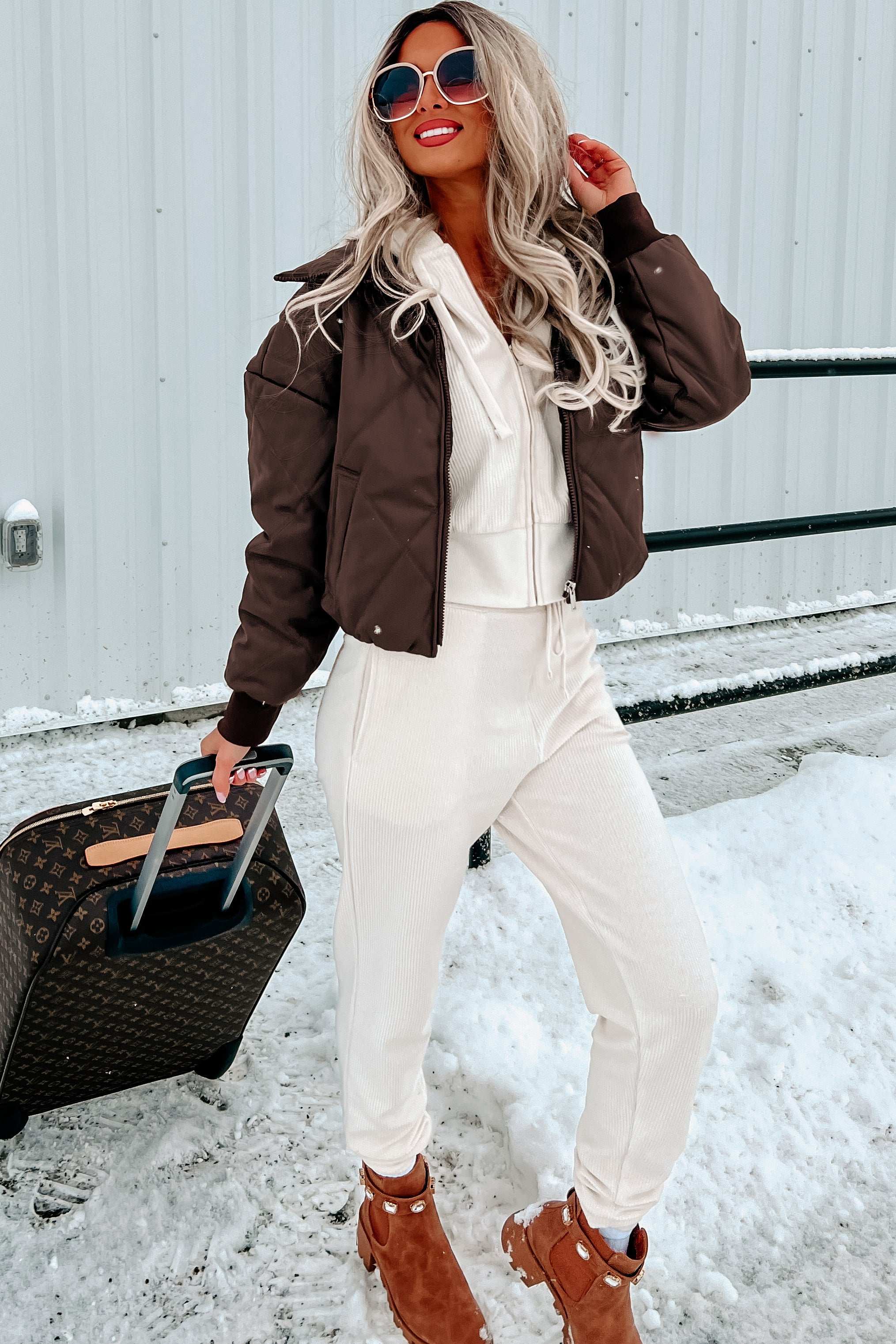 Be Edgy & Cool With This Chocolate Brown. Quilted. Vegan Leather Jacket Featuring A Soft. Sherpa Lining!