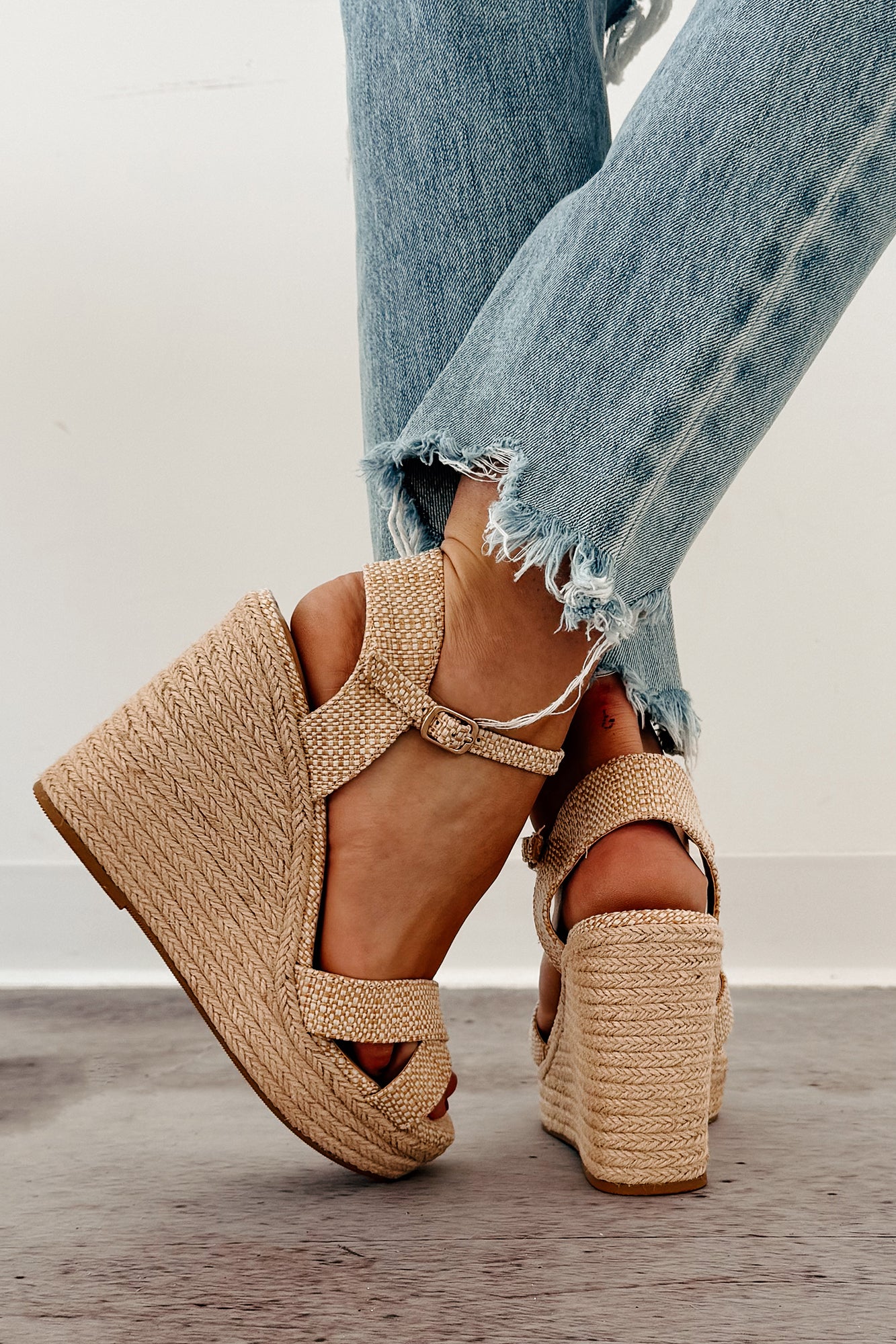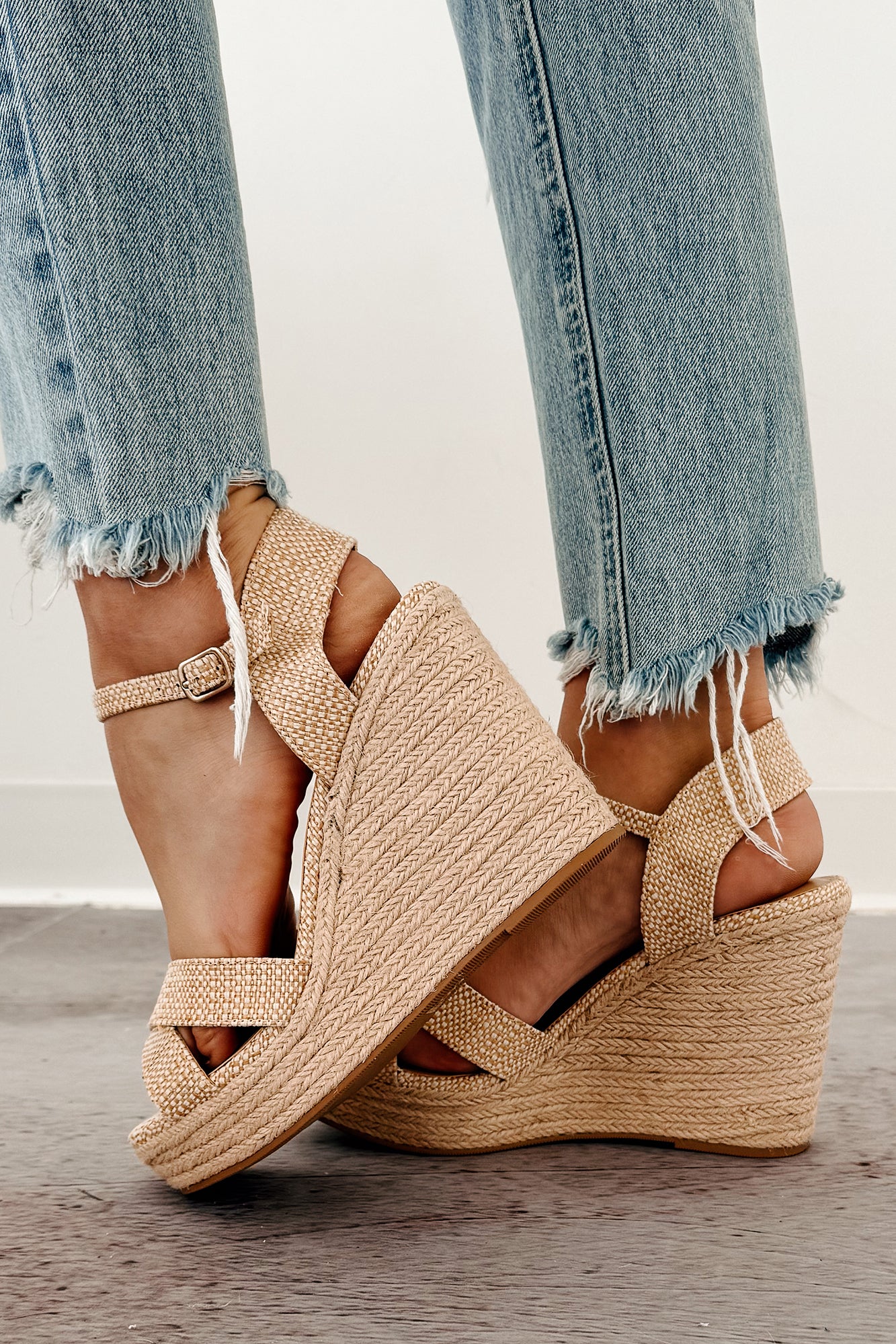 Love Me Not Raffia Platform Wedge Sandals (Natural)