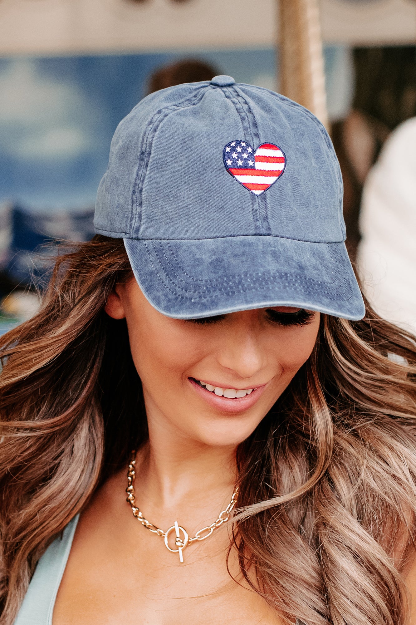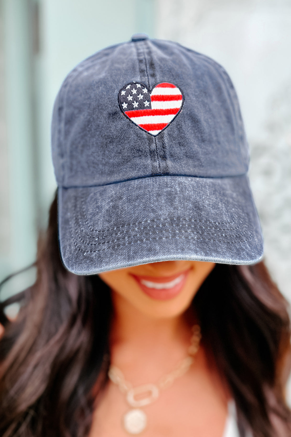 Love Your Country Heart Embroidered Baseball Cap (Navy)