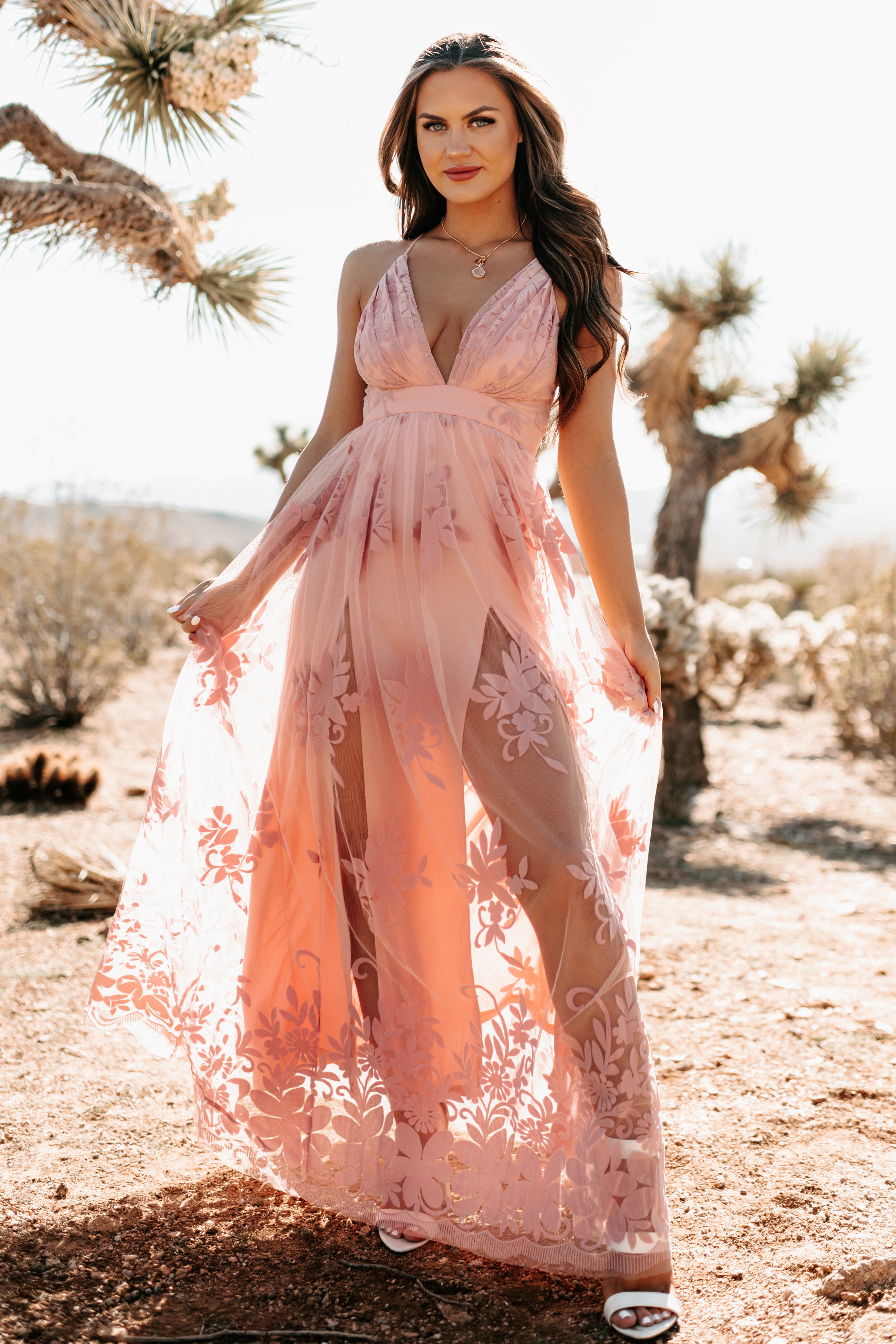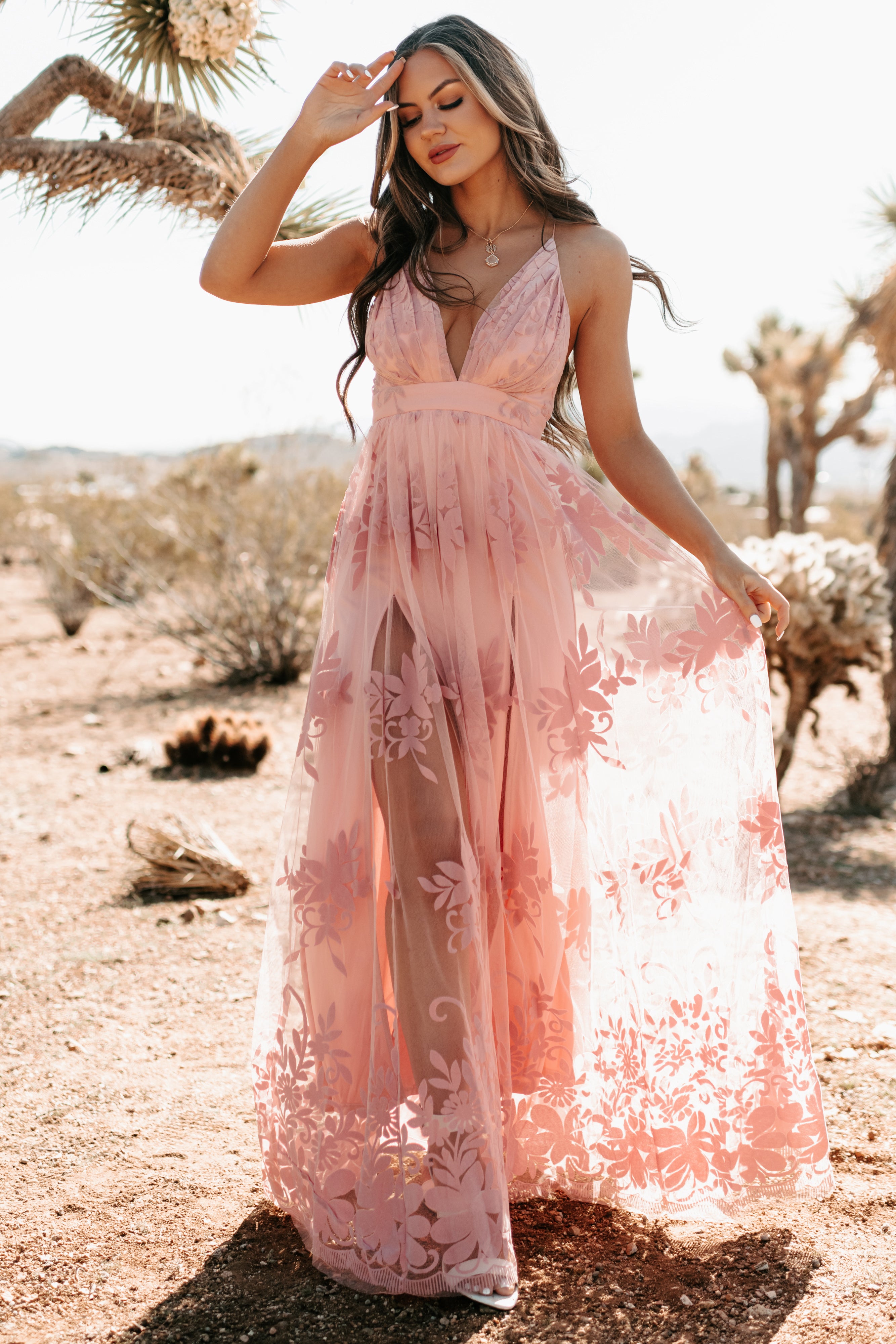 This Mauve. Floral Mesh. Maxi Dress Will Look Sensational On You! Better Grab It Quick!
