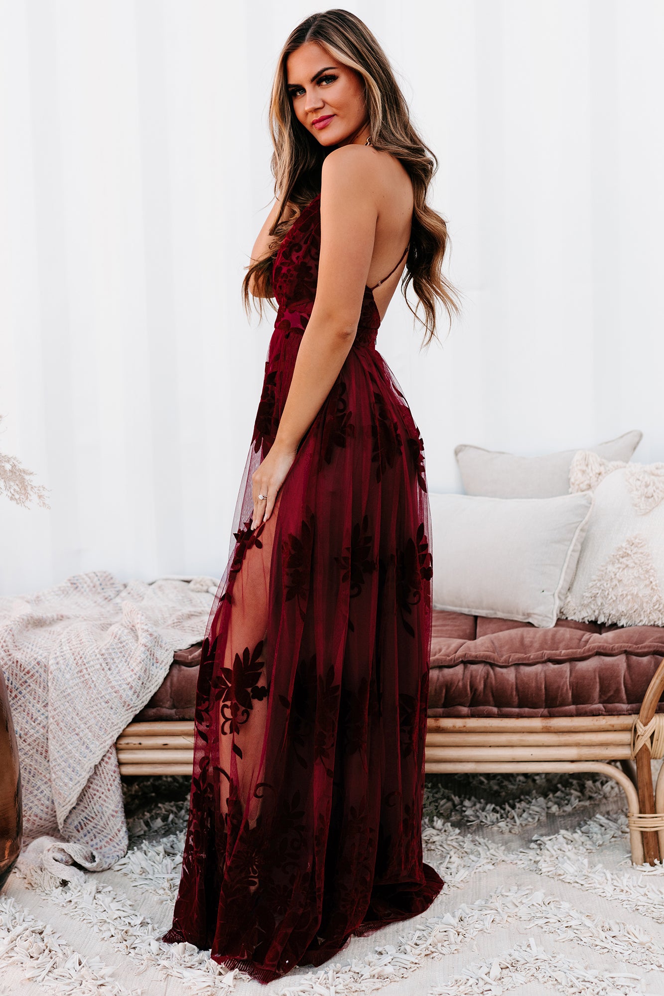 This Wine. Floral Mesh. Maxi Dress Will Look Sensational On You! Better Grab It Quick!