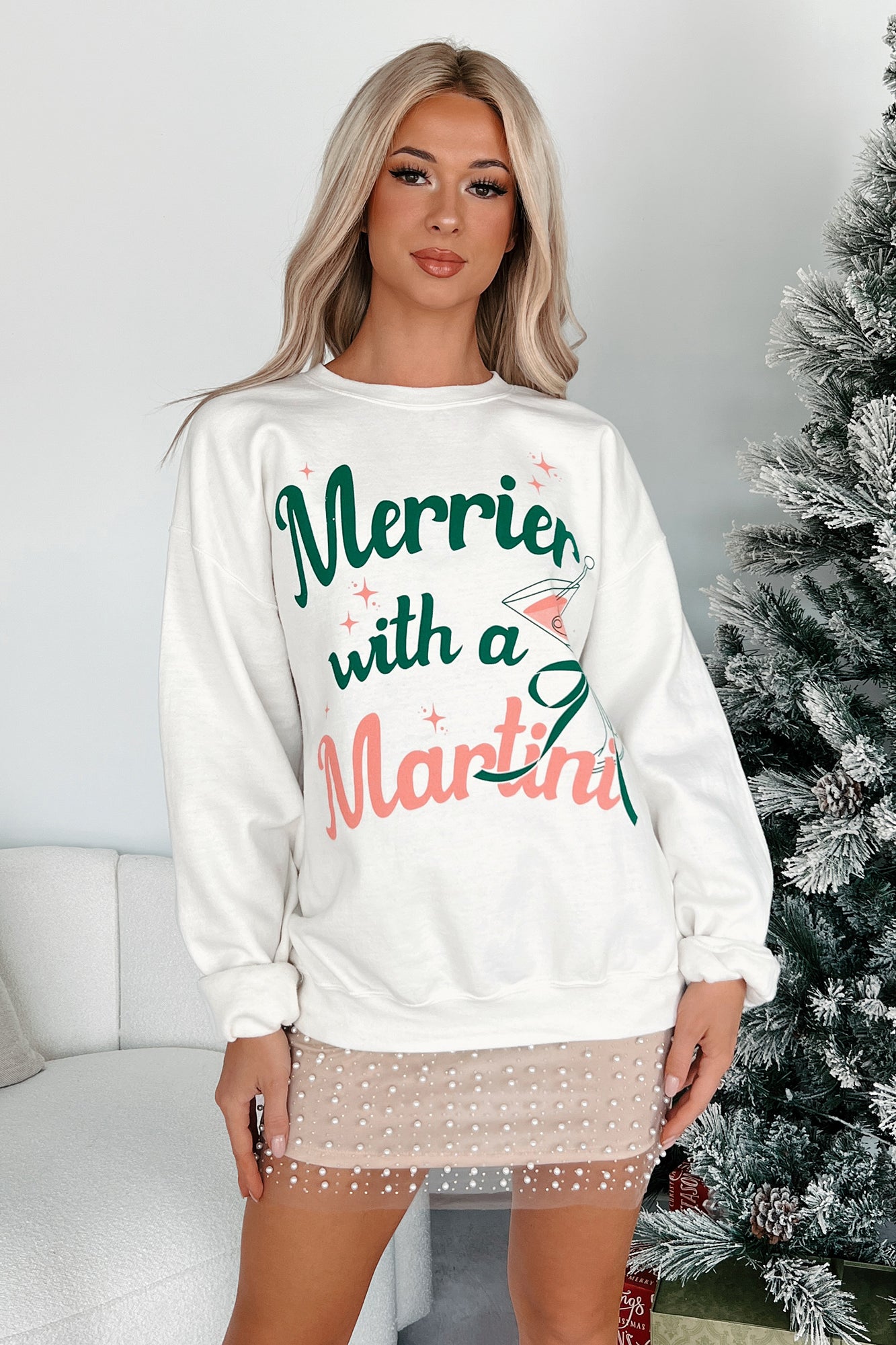 - Front: "Merrier With A Martini" Graphic