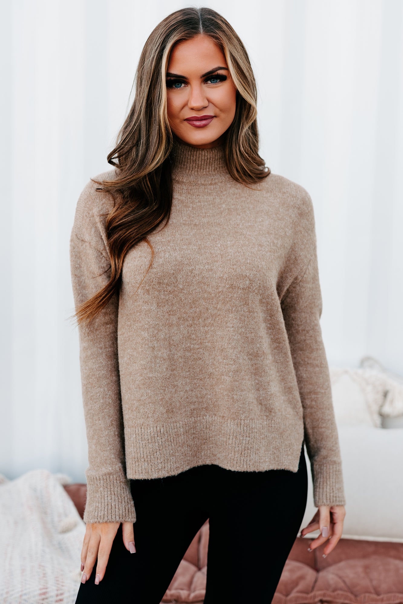 If You're All About The Neutrals Then This Taupe. Mock Neck Sweater Was Made For You!