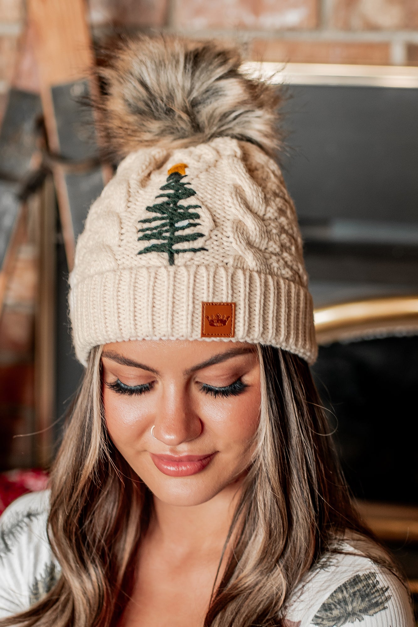 Pining For Christmas Knit Pom Beanie (Beige Tree)