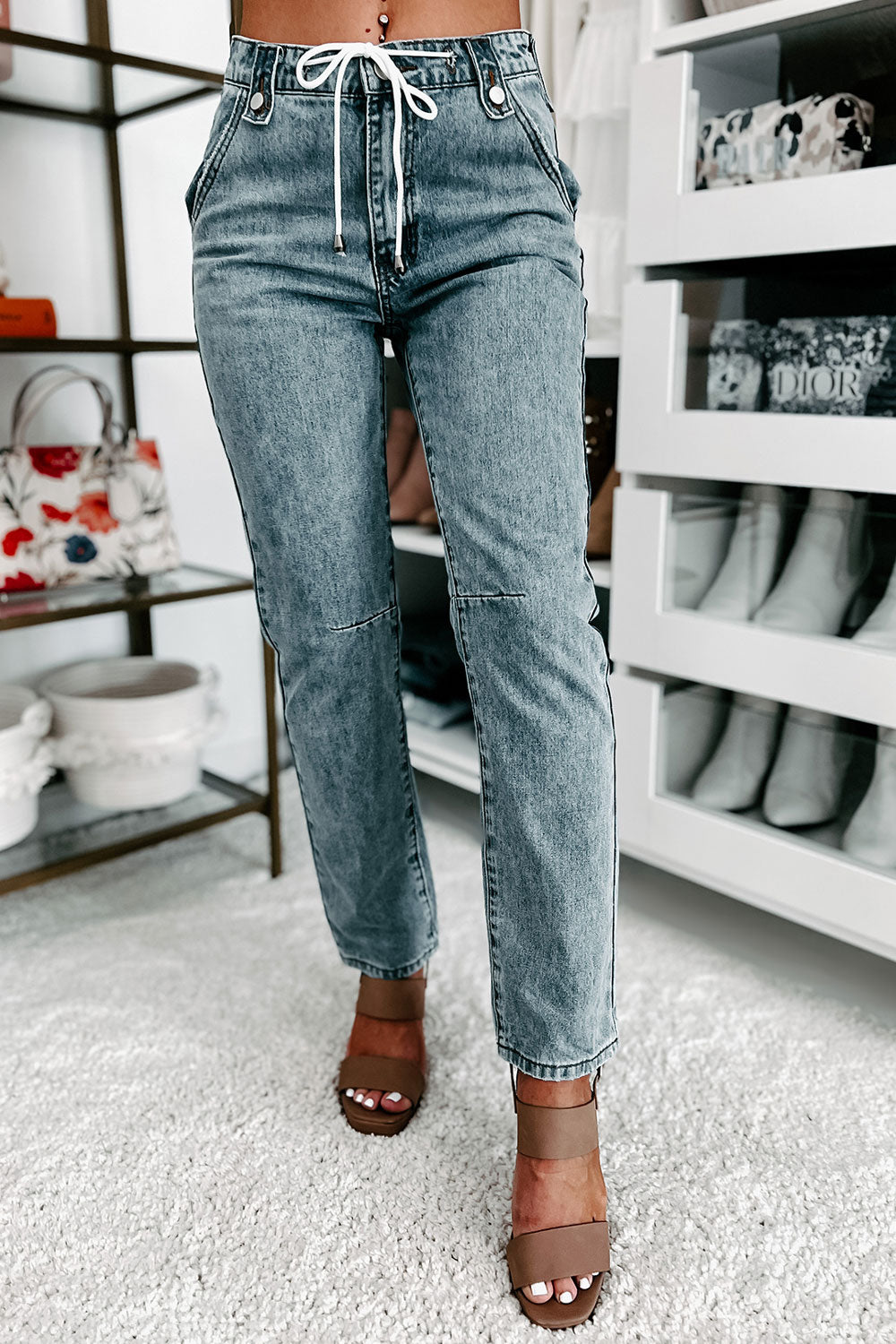 These Light Wash. Mom Jeans With A Drawstring Waistband Are So Unique And Fun!