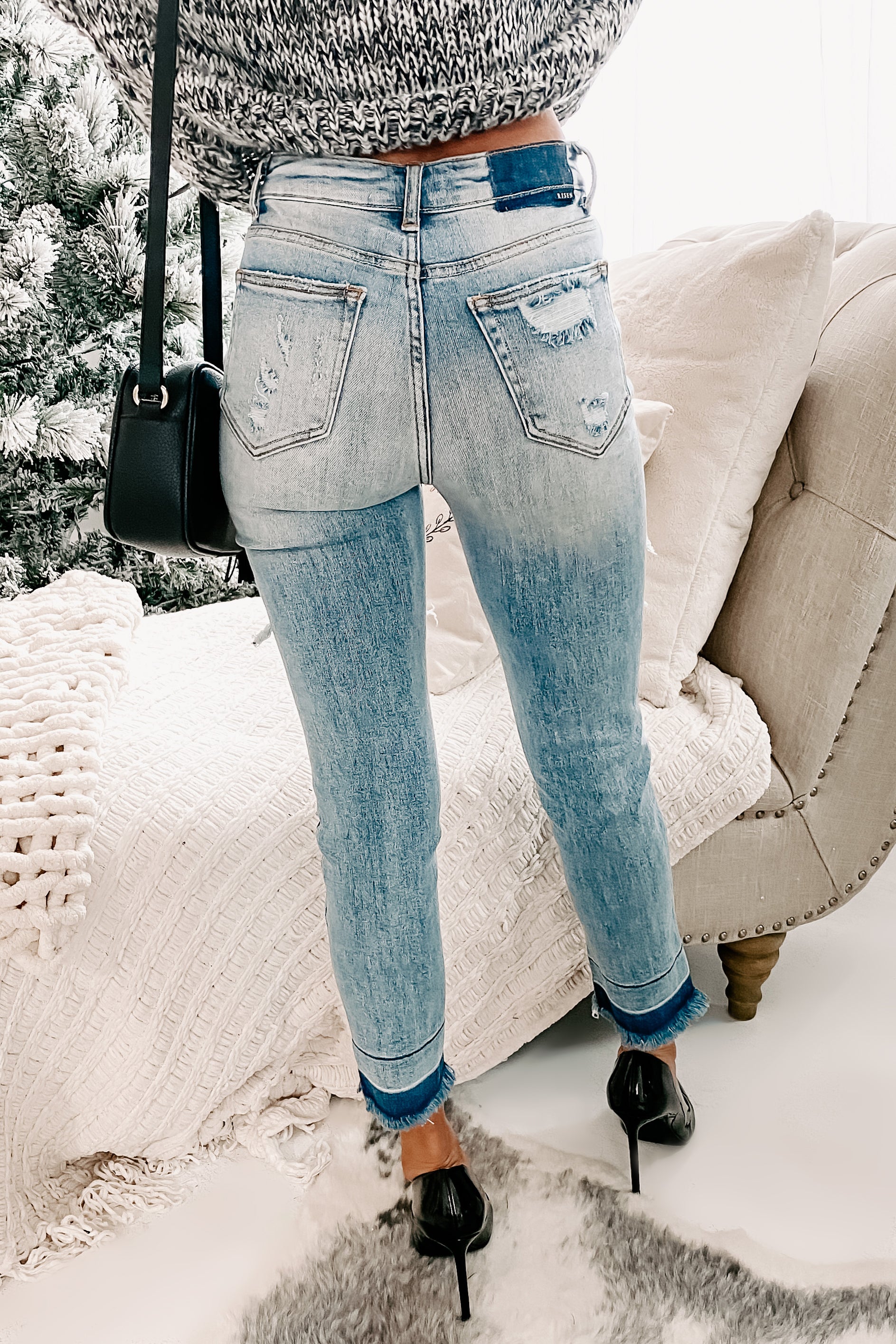 These Light Wash. Distressed. Straight Leg Jeans Are Going To Be Your New Favorite Pair! The Dip Dyed Shadow Hem Is So Trendy!