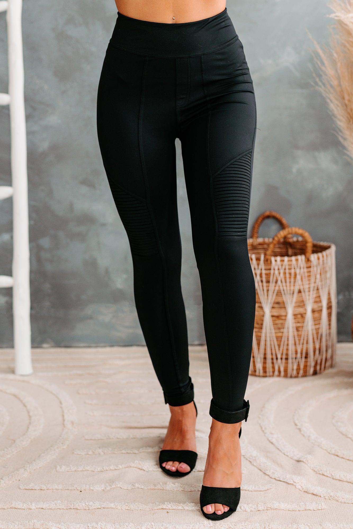These Black. High Waisted. Pleated Thigh. Moto Leggings Are The Perfect Solution For Wanting To Look Good But Feel Comfortable!